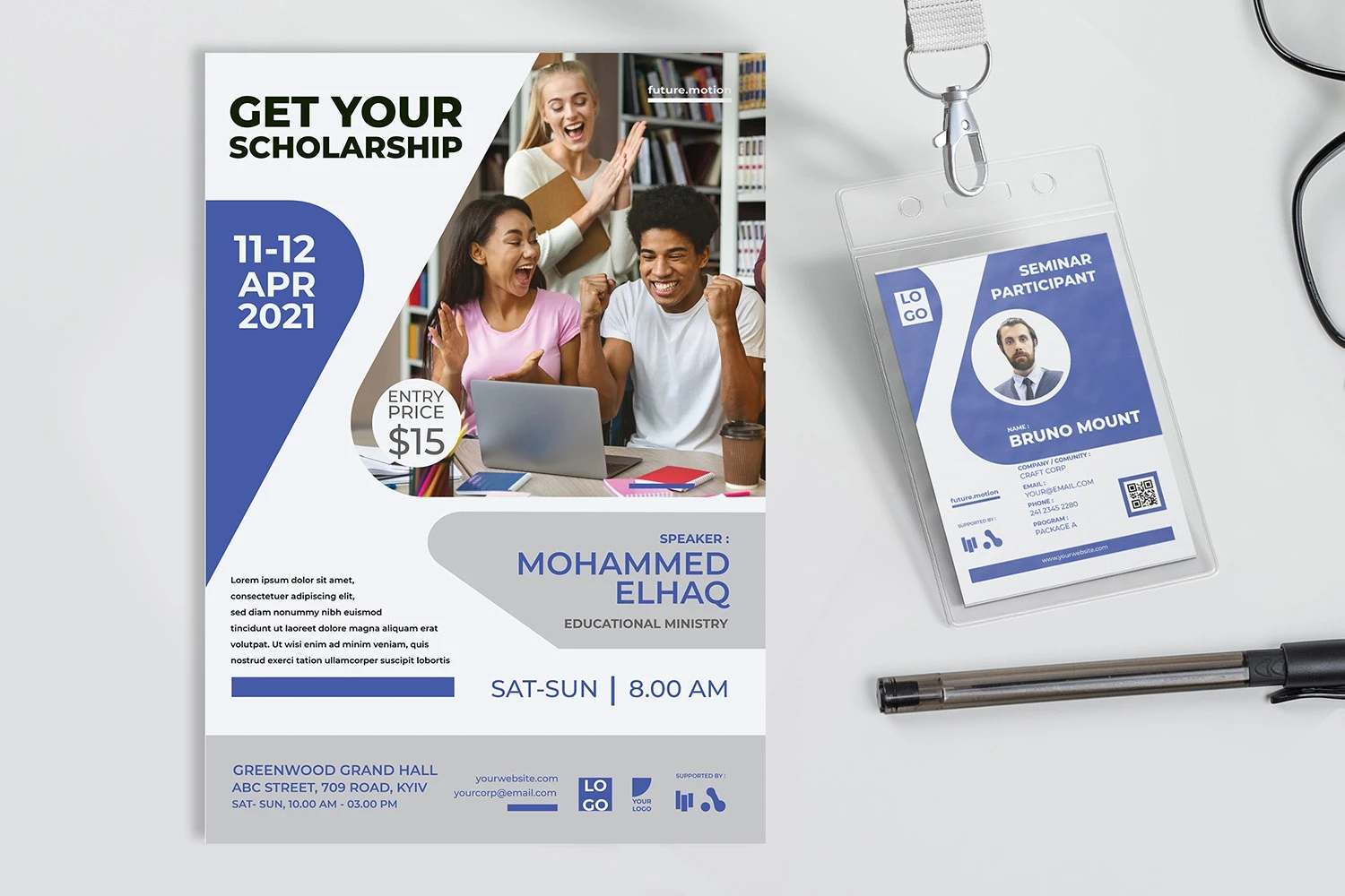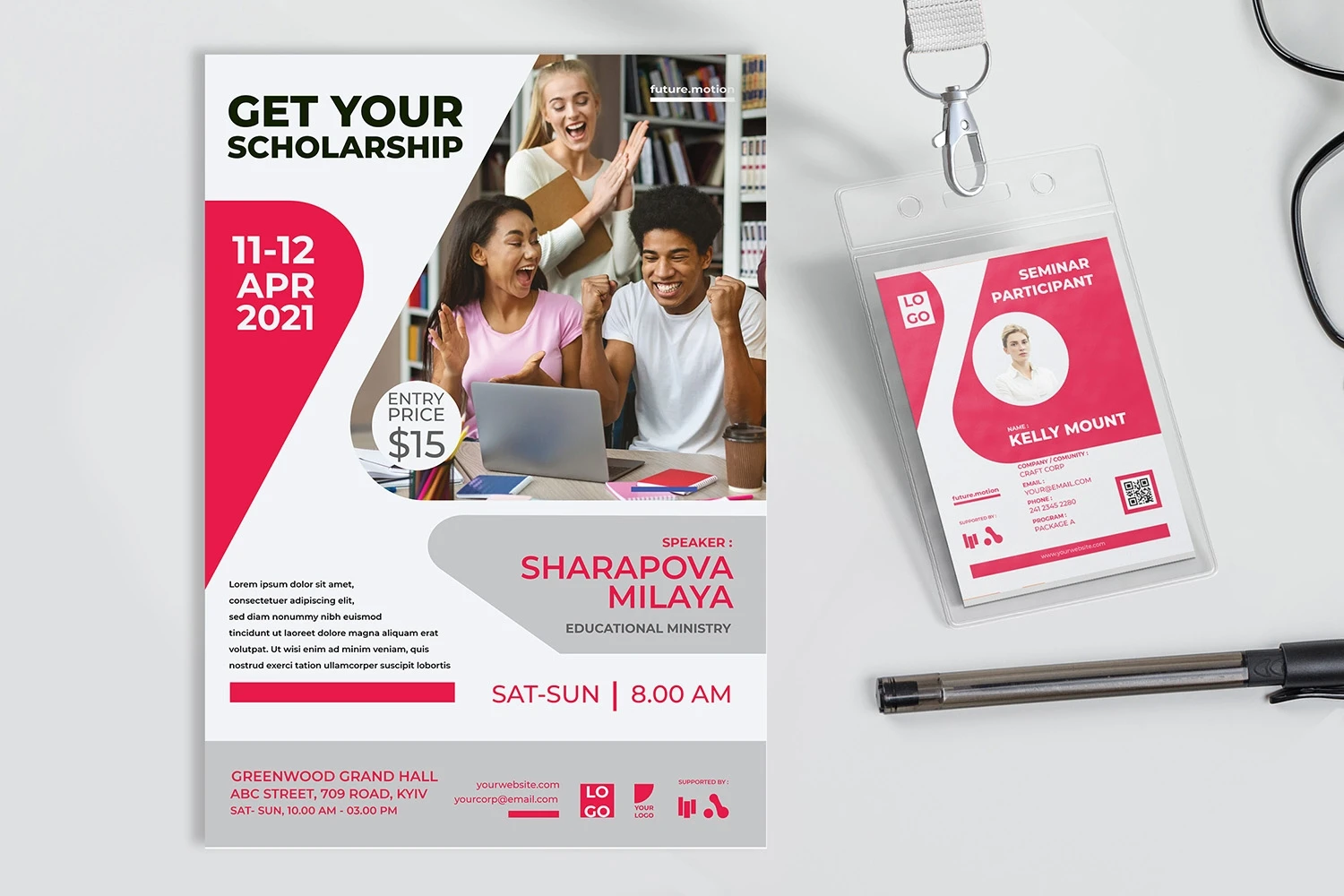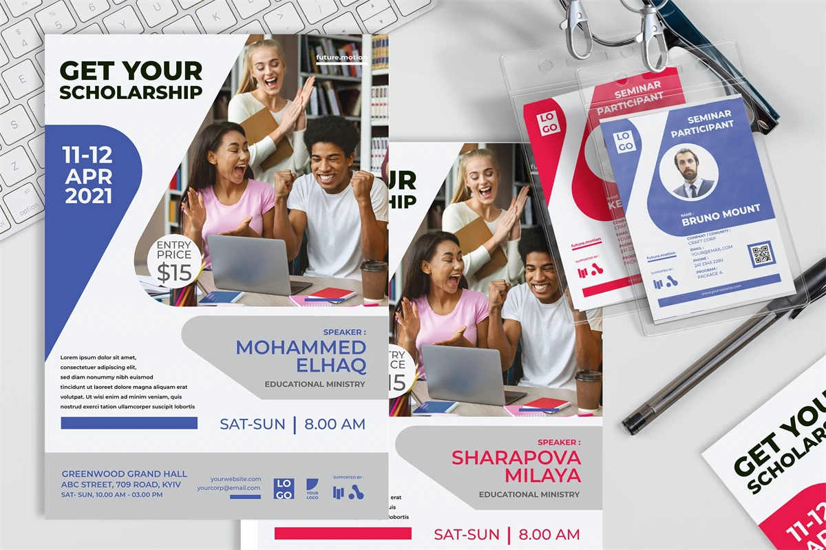 Get Your Scholarship - Poster and Seminar Invitation, is an invitation card leaflet, poster design, etc. Simple and very elegant You can easily edit & adjust each design because each layer such as text, images and shapes are well organized and highlighted.