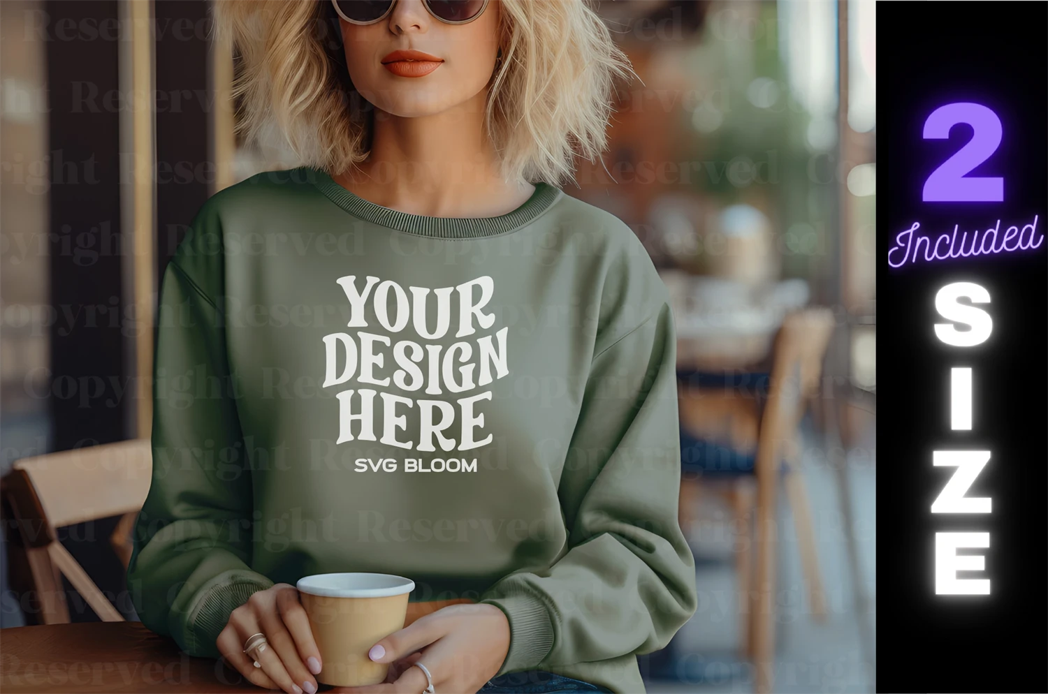 Dog Mom Gildan 18000 Sweatshirt Mockup Winter Boho Woman Sweater Mockup Stylish Mockup Easy To Use Mockup Stunning Model