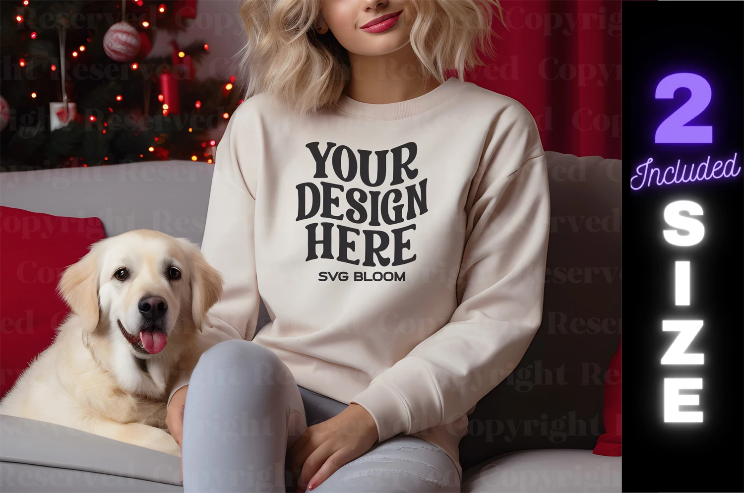 Dog Mom Gildan 18000 Sweatshirt Mockup Winter Boho Woman Sweater Mockup Stylish Mockup Easy To Use Mockup Stunning Model