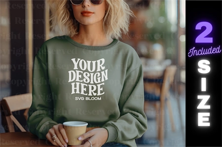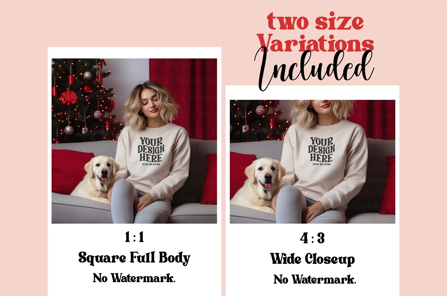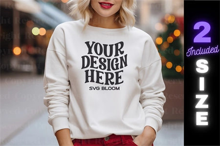 Gildan 18000 White Dog Mom Sweatshirt Mockup 2 Size Included