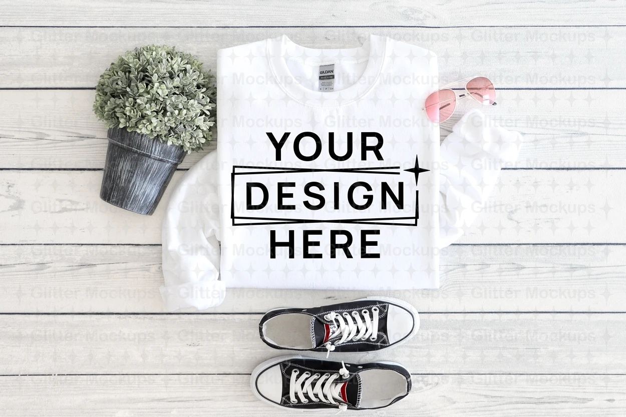 Gildan 18000 White Sweatshirt Mockup, Unisex Mockup, Winter