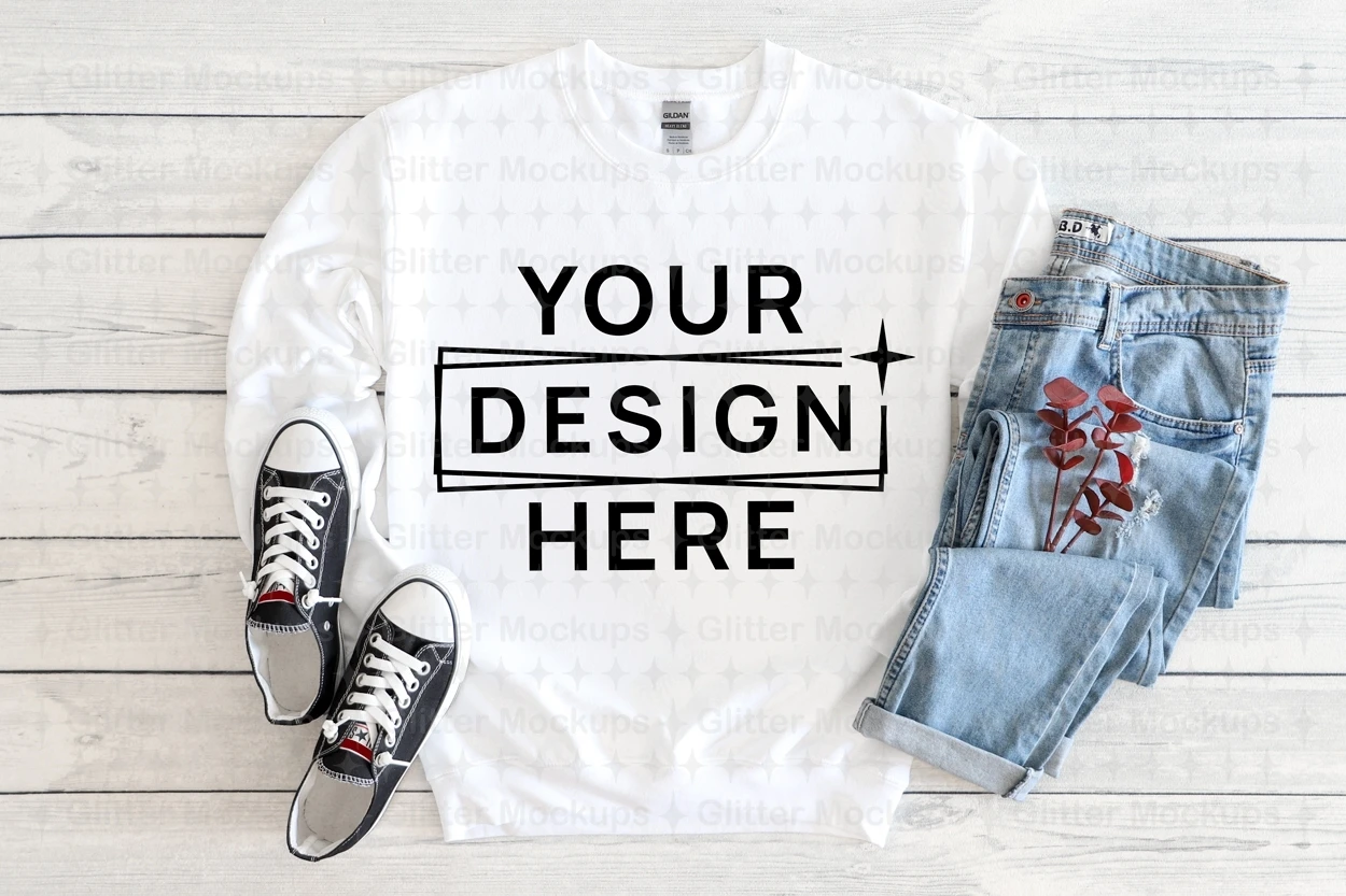Gildan 18000 White Sweatshirt Mockup, Unisex Mockup, Winter