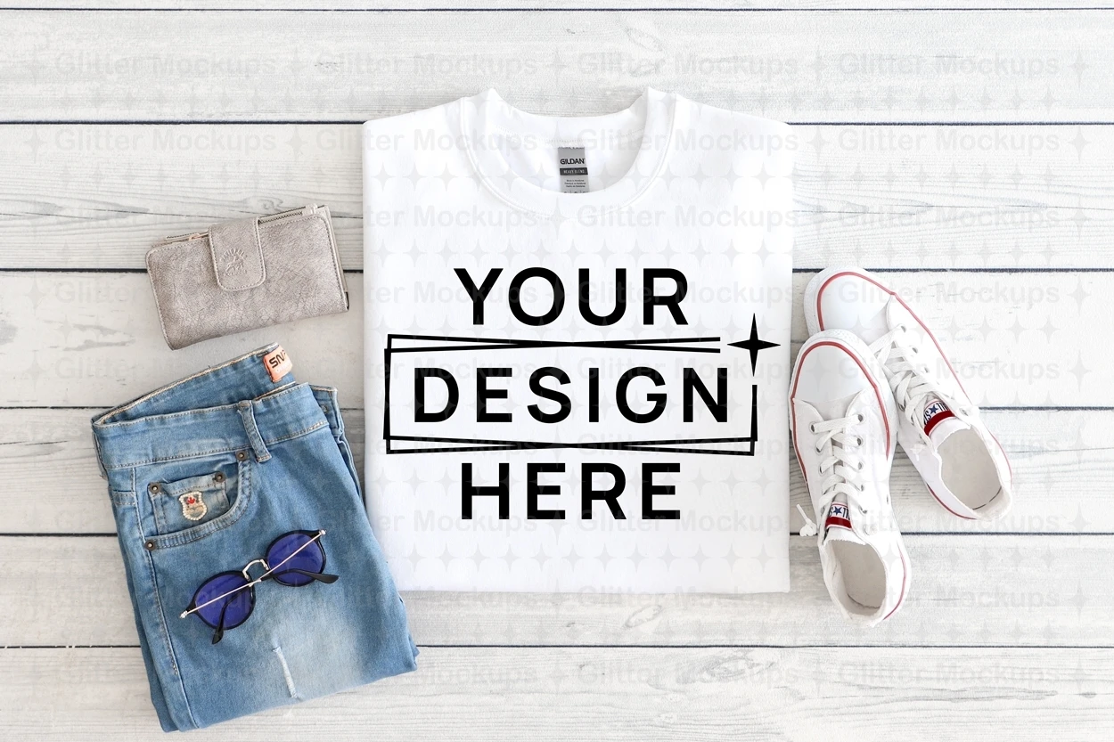 Gildan 18000 White Sweatshirt Mockup, Women Mockup, Winter