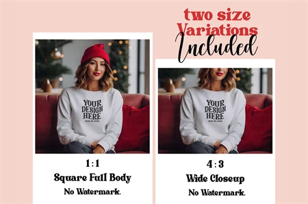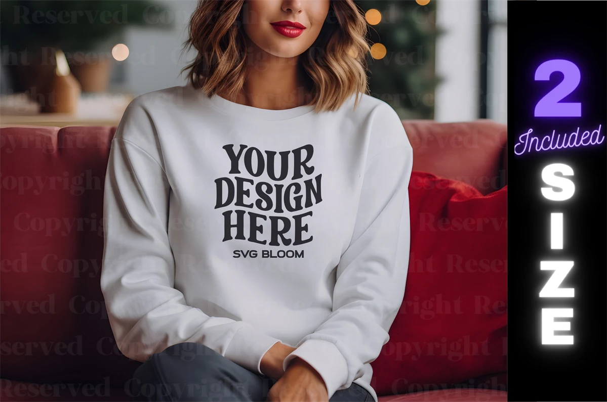 Gildan 18000 White Winter Sweatshirt Mockup 2 Size Included