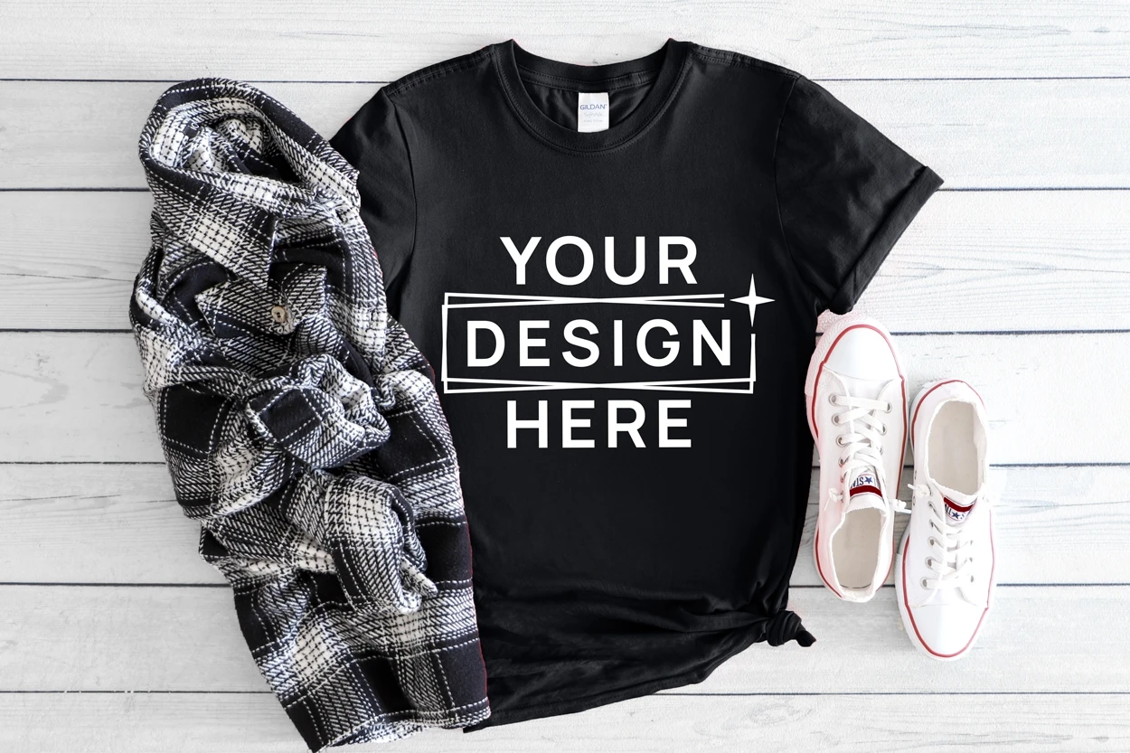 Gildan 64000 Black Mockup, Unisex Jersey Short Sleeve Tee