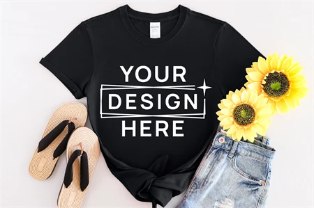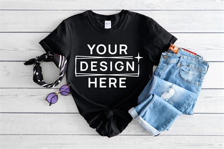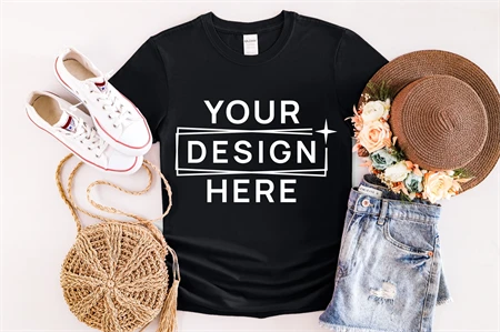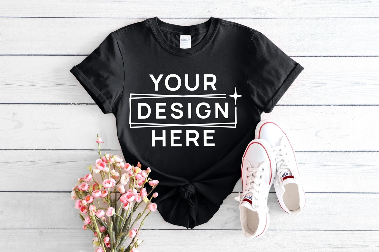 Gildan 64000 Black Mockup, Unisex T-Shirt, Flat Lay, Png