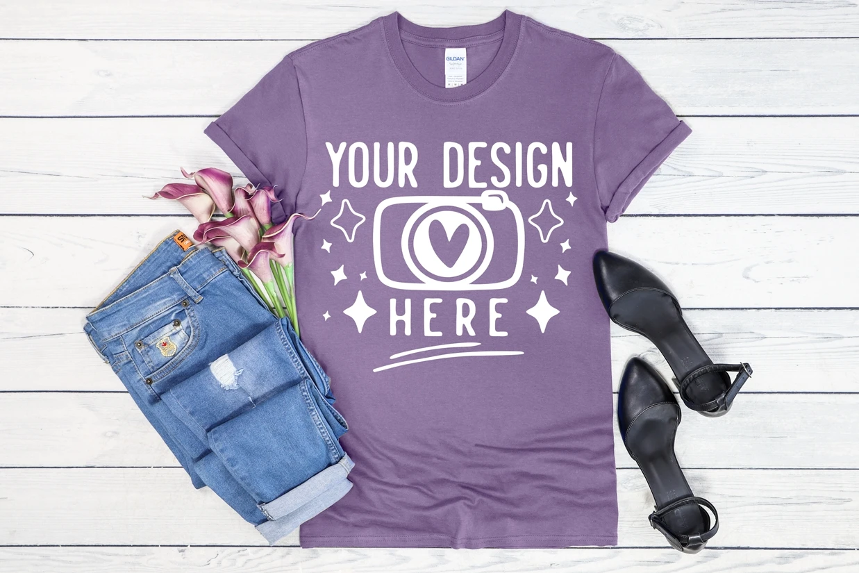Gildan 64000 Heather Purple Mockup, Gildan 64000, T-Shirt