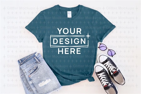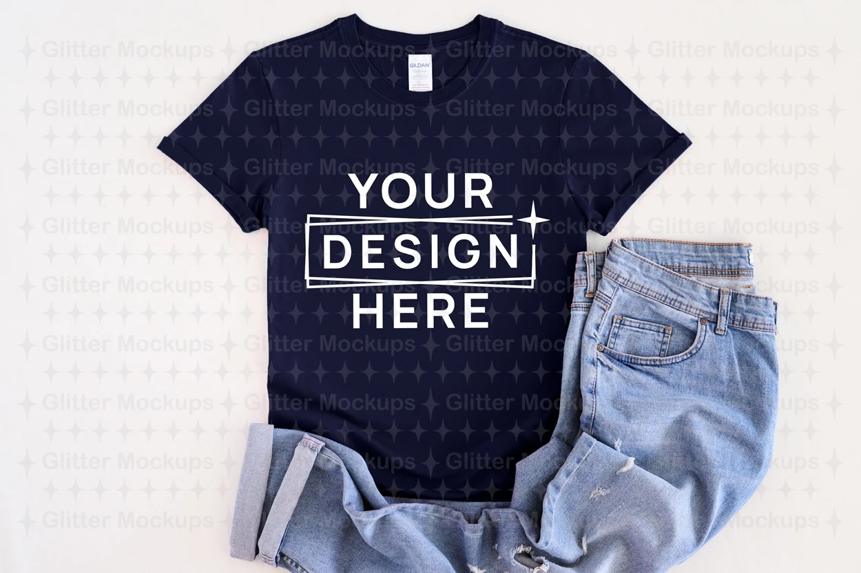 Gildan 64000 Navy Mockup, Unisex T-Shirt, Flat Lay, Plain