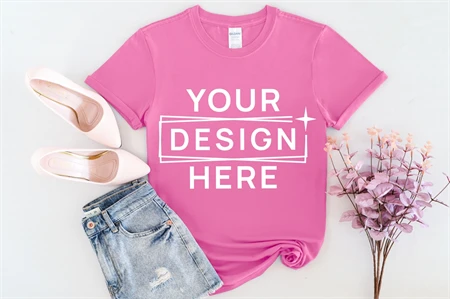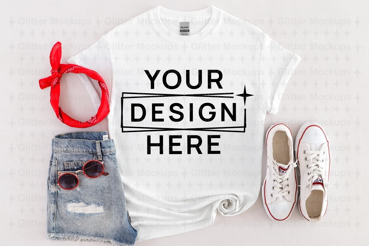 Gildan 64000 White Mockup, Unisex T-Shirt Mockup, Flat Lay