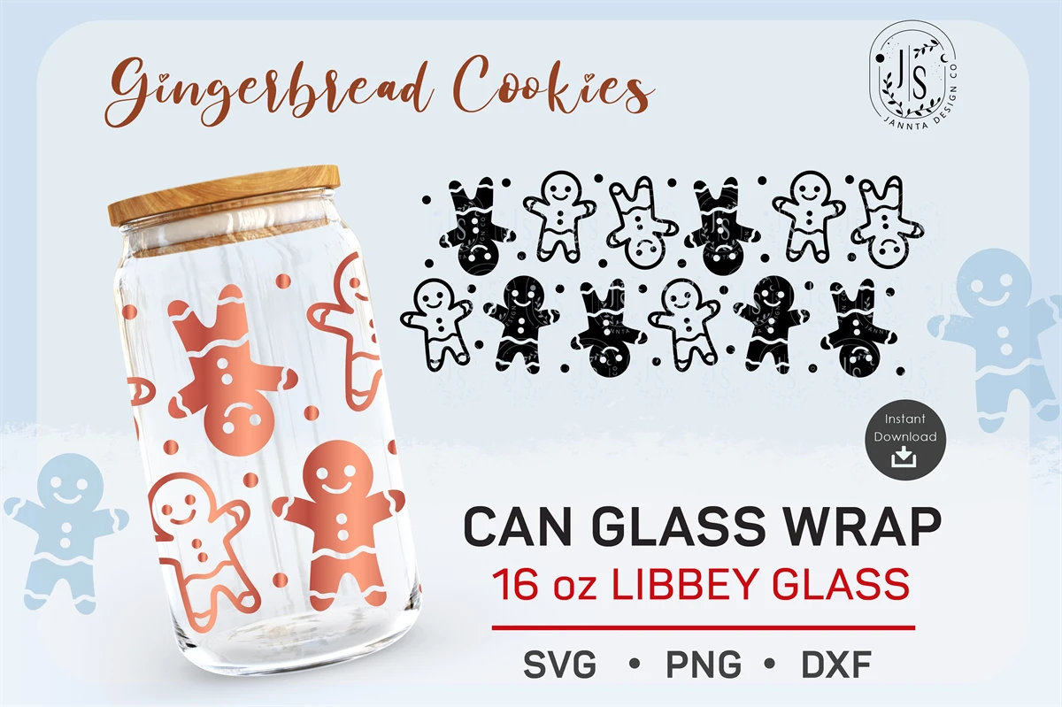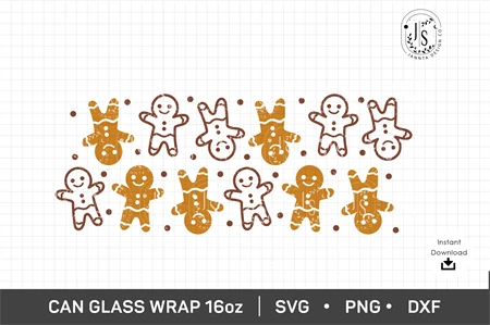 Gingerbread men, 16oz glass can wrap, Christmas Cookies, Christmas SVG, Merry Christmas SVG, Libbey glass png, SVG Files For Cricut, SILHOUETTE, SVG, Iced Coffee Glass, SVG files for Cricut, Libbey beer glass, wrap SVG, SVG files, WRAP TEMPLATE, Full Wrap for Can Glass, Seamless Wraps, PNG Digital Download Template