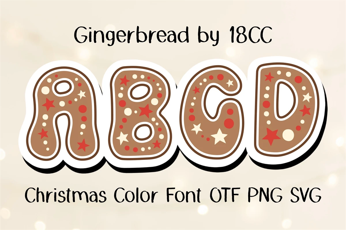 Gingerbread is a cute Color Font in Christmas Theme. Delicious cookies at a party. This font is the perfect fit for all of your t-shirt, social media, crafty DIY projects, and much more!