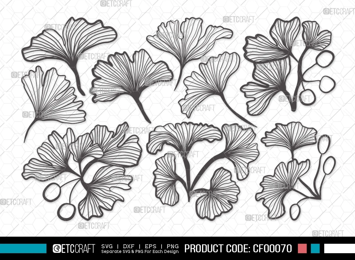 Embrace the spirit of autumn and artistic expression with our "Ginkgo Leaves Outline Autumn Biloba Plants" SVG Cut File Bundle. Let the grace of ginkgo leaves elevate your creative projects.