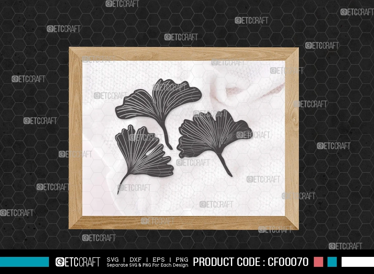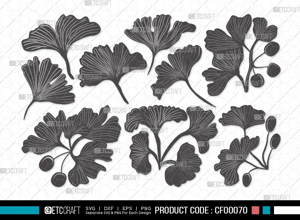 Embrace the autumnal charm and artistic possibilities with our "Ginkgo Leaves Silhouette Autumn Biloba Plants" SVG Cut File Bundle. Let the beauty of ginkgo leaves inspire your creative journey.