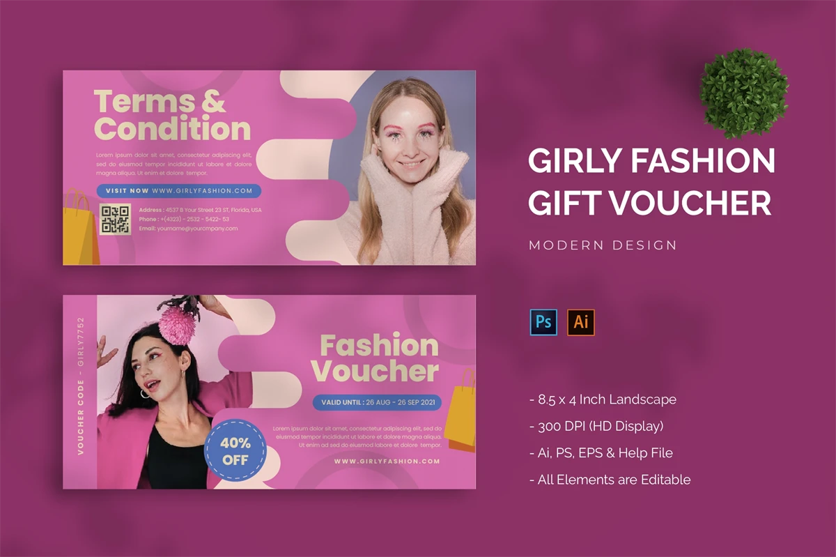 This is a Girly Fashion - Gift Voucher Get it now and don't miss it!, a Gift Voucher for all your business and personal needs. Great for your business and this design will keep you interested, elegant, and easy to edit according to your needs (** Adobe Illustrator, Adobe Photoshop **). You can use this Gift Voucher for your business, event or other publishing like marketing promotions and company profile, and you can also use this gift voucher to your clients and family, I hope you enjoy this, Hope you like it don't forget to rate, Thanks.