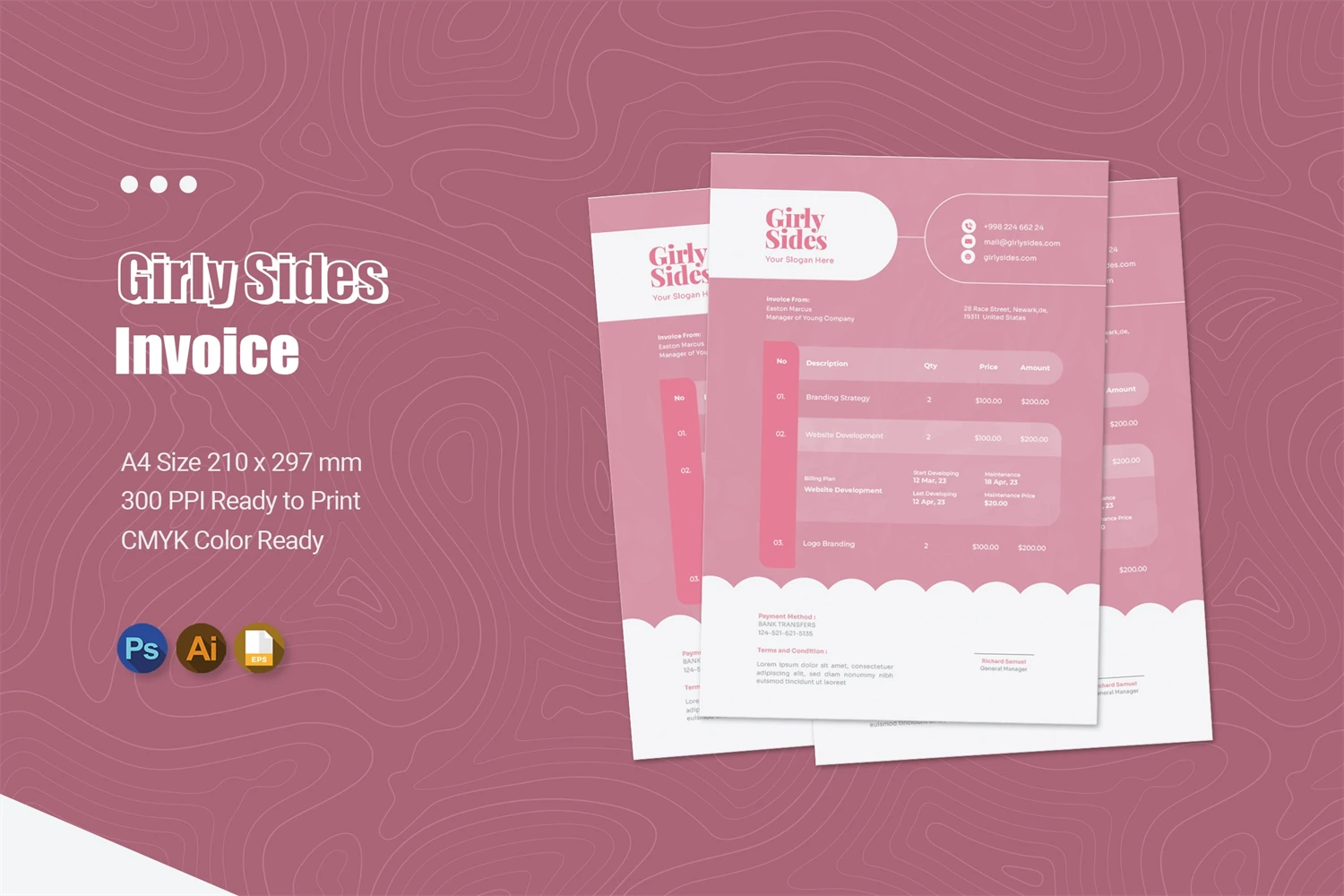 Use our invoices to make your bookkeeping easier and to impress your clients with an invoice display that has a modern, elegant design and strong typography. This invoice template is easy to use and customizable, making it perfect for any medium.