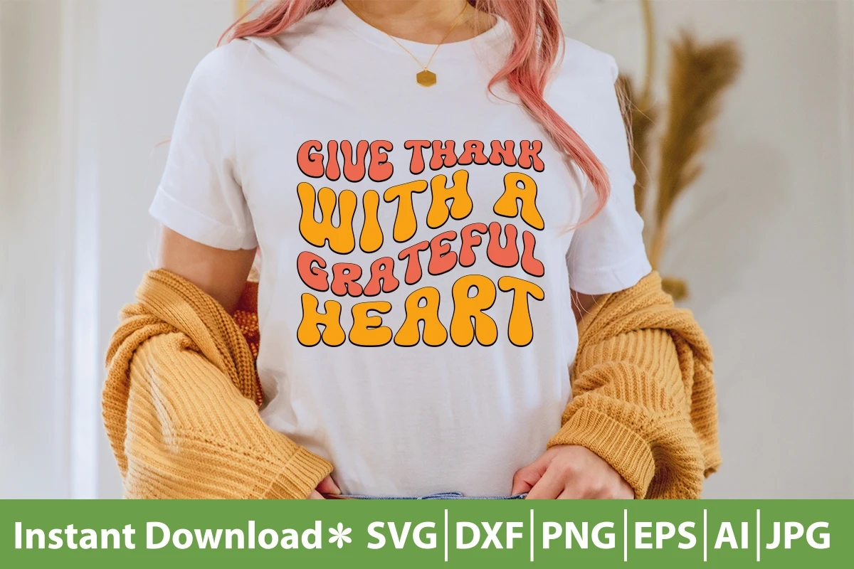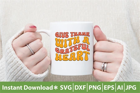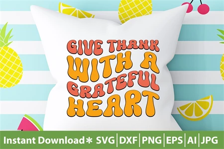 Give Thank With A Greatful Heart Retro SVG Cut File Design