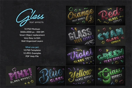 Professional multifunctional Photoshop template transforms your text, vector shape, pixel layer, smart object, layer group into glassy 3D objects. Highly detailed result, a lot of possibilities. PDF help file included.