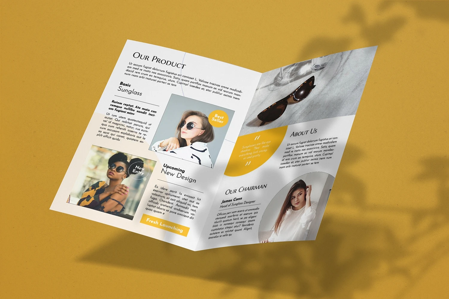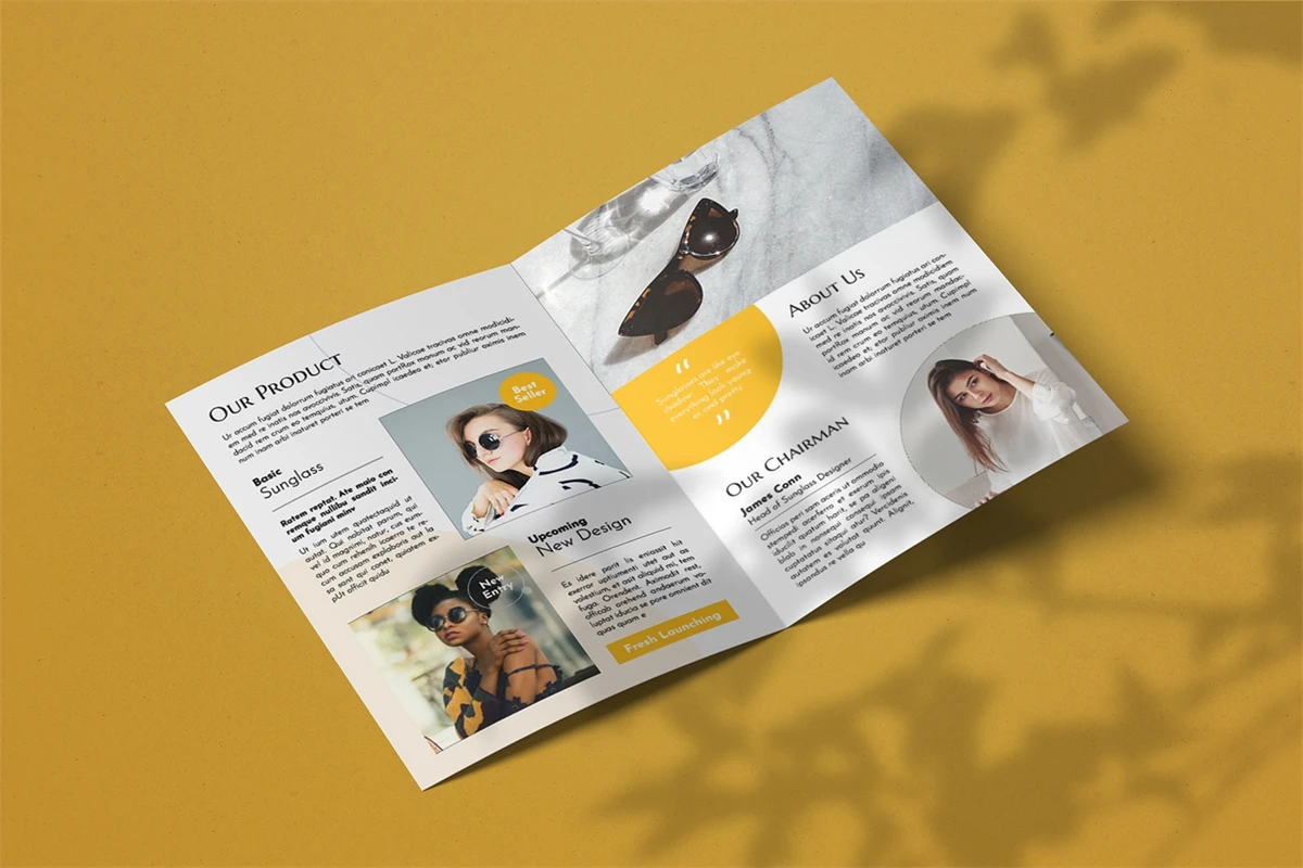 Glasses Fashion - Bifold Brochure We present this Bifold Brochure for you, simple and very elegant, and this Bifold Brochure is suitable for all types of your business, made with adobe inDesign, very easy to customize, Hope you Like it, dont forget to rate, Thanks.