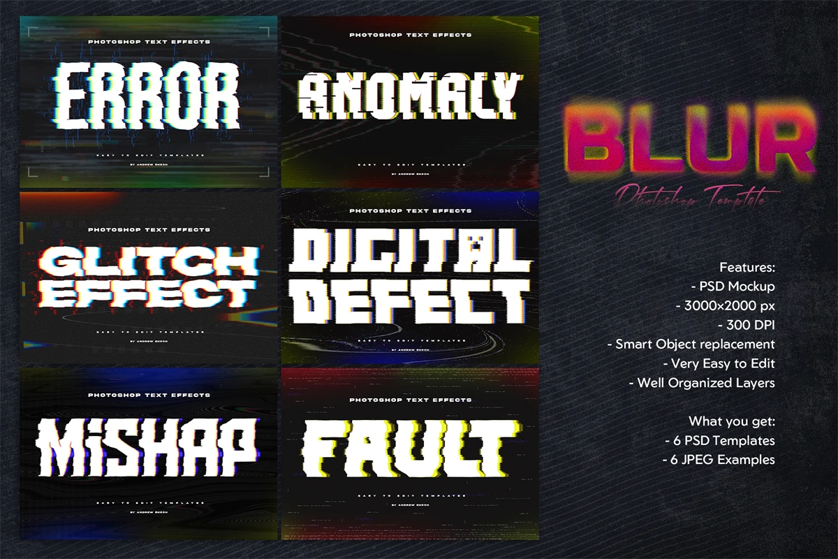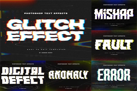 Transform your digital designs with the mesmerizing allure of Glitch Text Effects. This collection of glitch-inspired text effects injects a futuristic and edgy vibe into your typography, creating an electrifying visual impact. From distorted distortions to vibrant color shifts, each effect is meticulously crafted to emulate the captivating aesthetic of digital glitches.
