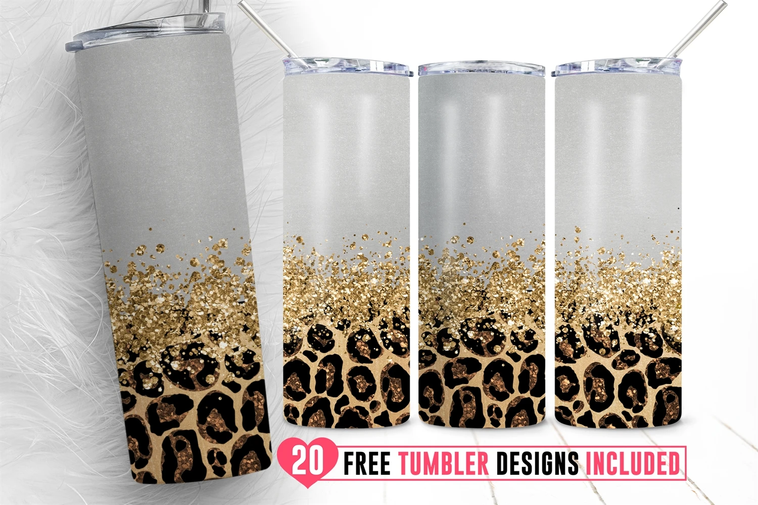 Glitter Marble Skinny Tumbler Leopard Glitter Animal Print