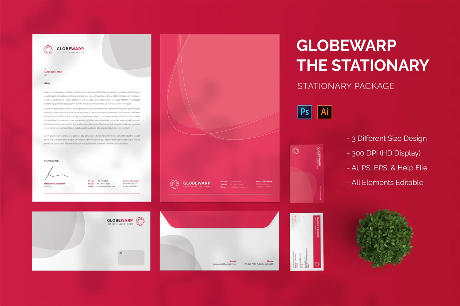 Globewarp - Stationary. This template is great for your business and this design will make your interested, elegant, and easily editable according to your needs. I hope you enjoy for this stationary.