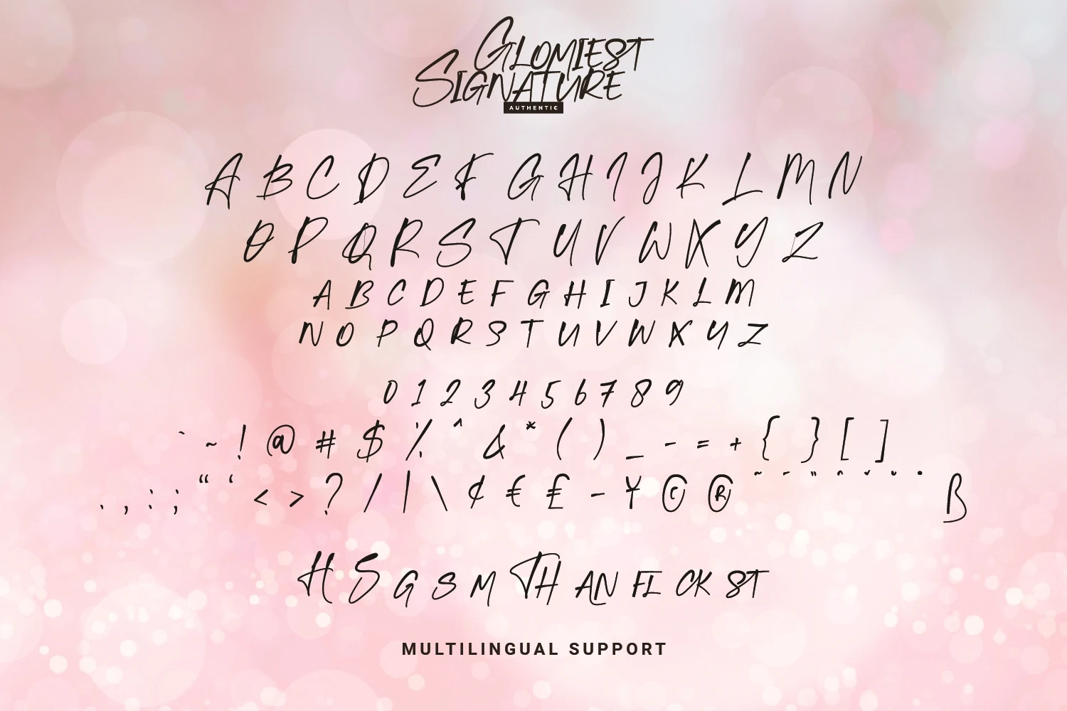 **Glomiest - Hanwritten Signature Font** with a calligraphy style, So beautiful on invitation like greeting cards, branding materials, business cards, quotes, posters, and more!