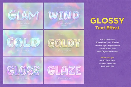 Tasty and glossy text effect. Perfect shining effect can be used for texts, logos and shapes. Be trendy with 6 shiny and glossy effects. Its an easy way to present your text, shape or logo in cool glossy style.