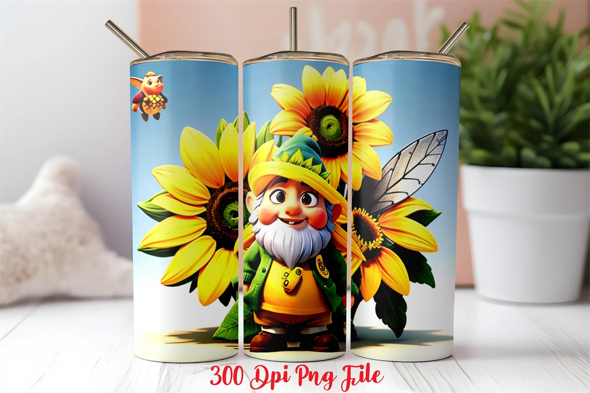 Gnome Bee Sunflower Tumbler Wrap Designs
