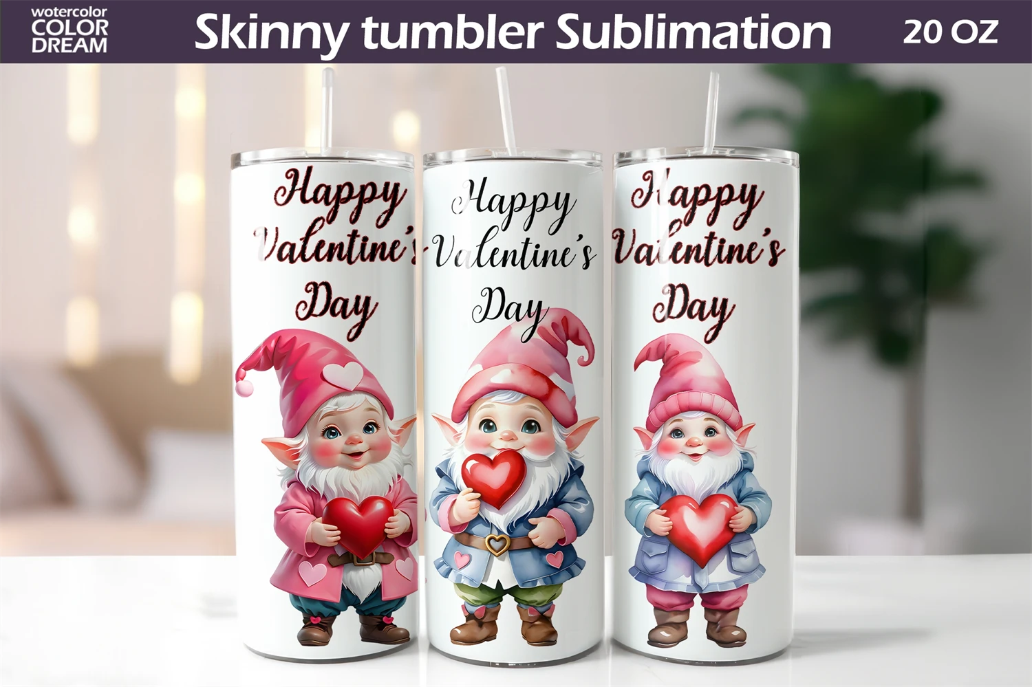 Gnome Valentine Tumbler Wrap. Valentines Day Tumbler