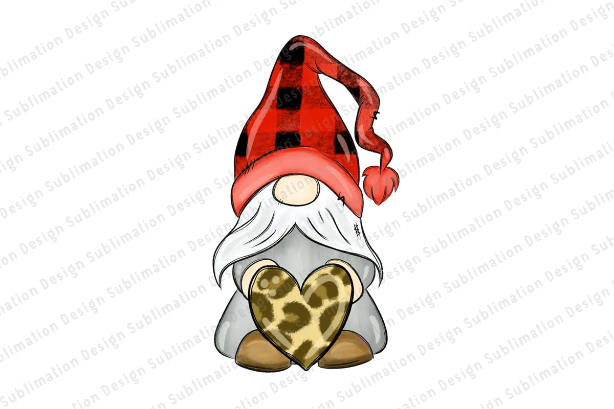 Gnome With Heart Sublimation Be My Valentine Buffalo Plaid