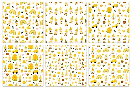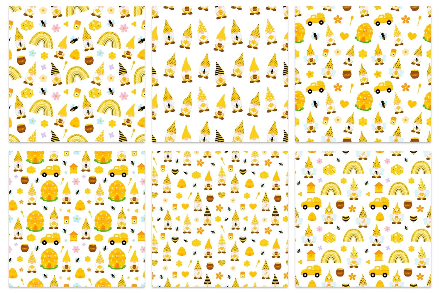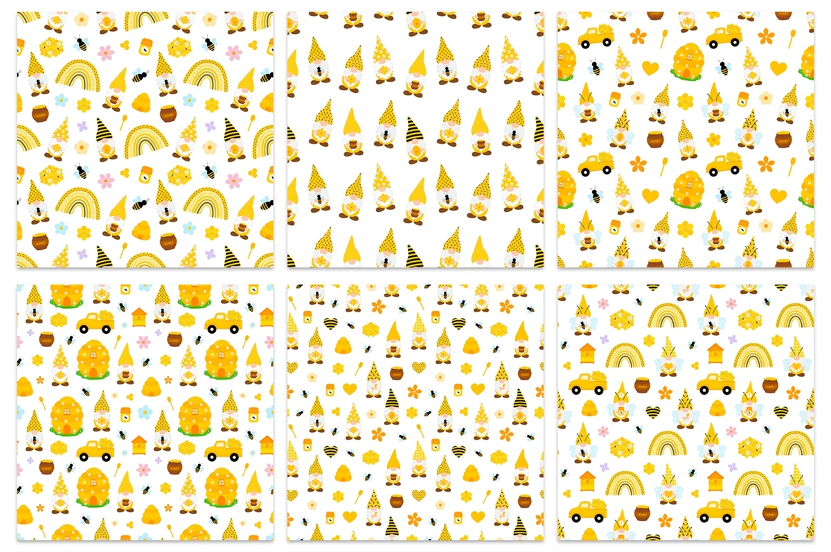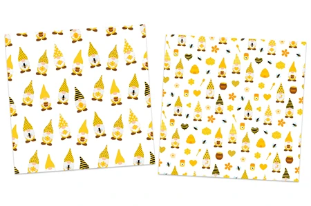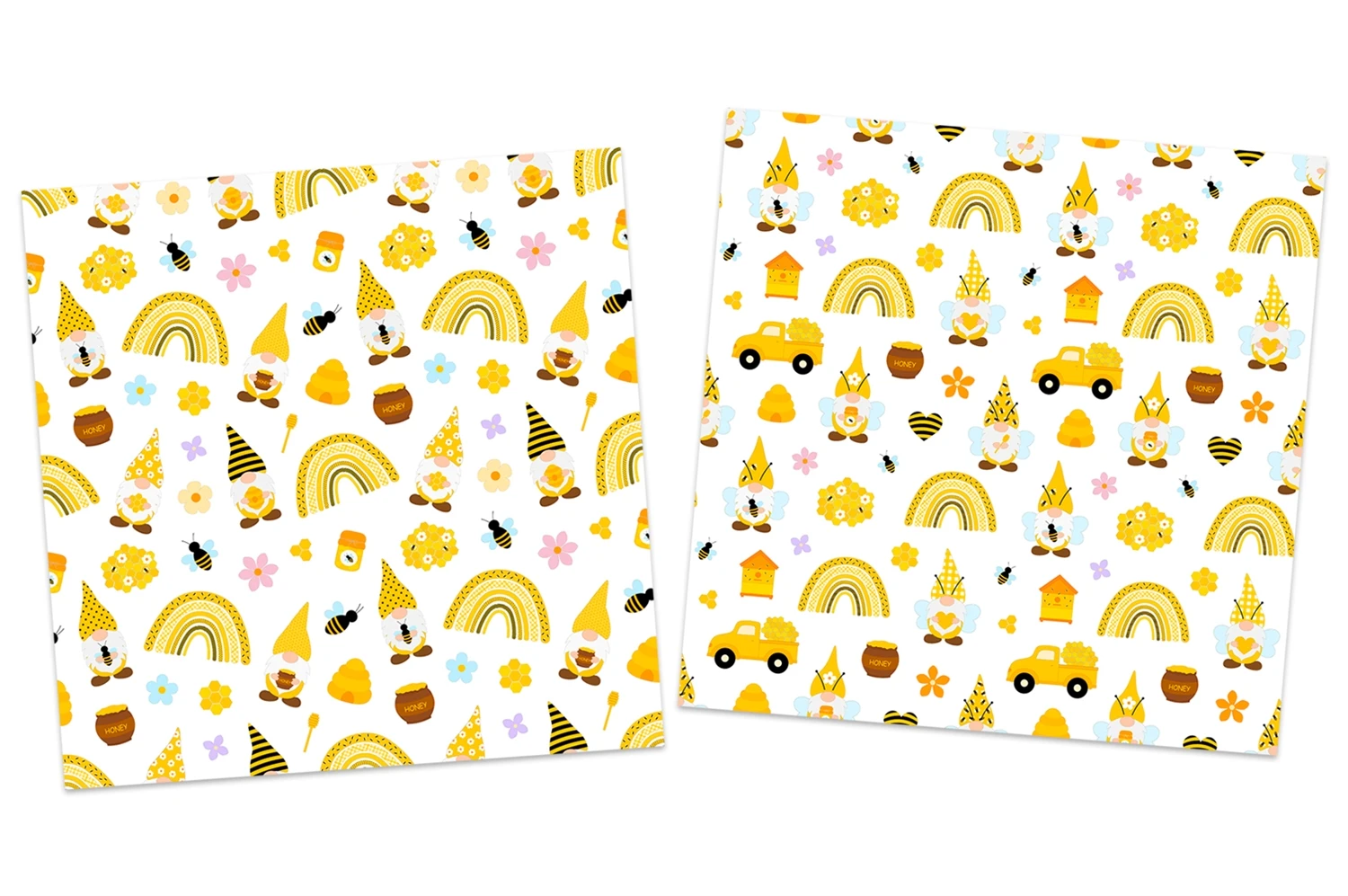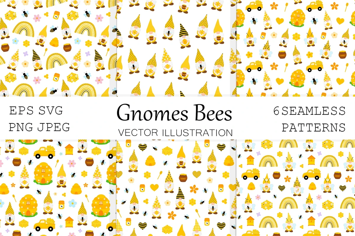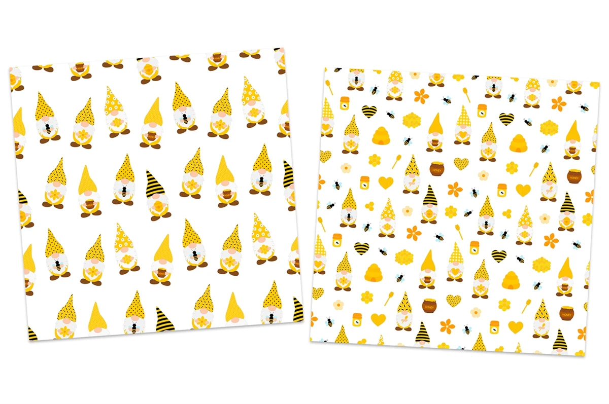 Gnomes Bees pattern. Gnomes Bees SVG. Gnome Honey background
