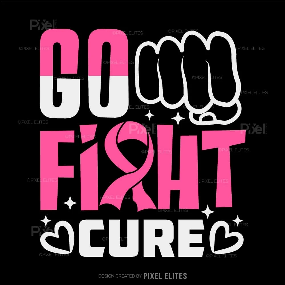 Show your support and determination with the Go Fight Cure SVG Cut Files for T-Shirt Design. This bold and inspiring design is perfect for creating custom apparel, decals, and gifts that promote awareness and encourage strength in the fight against cancer.