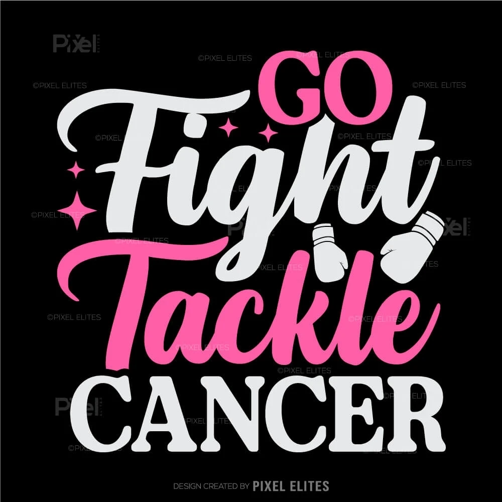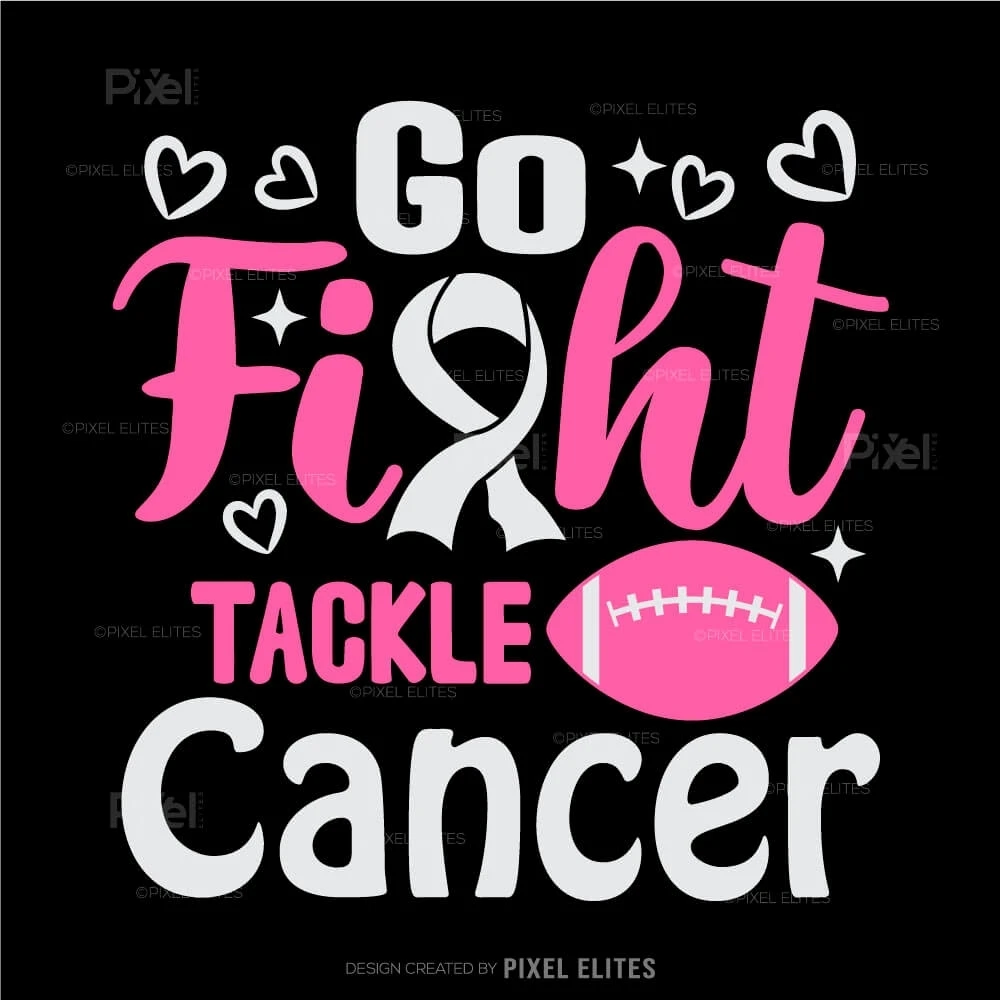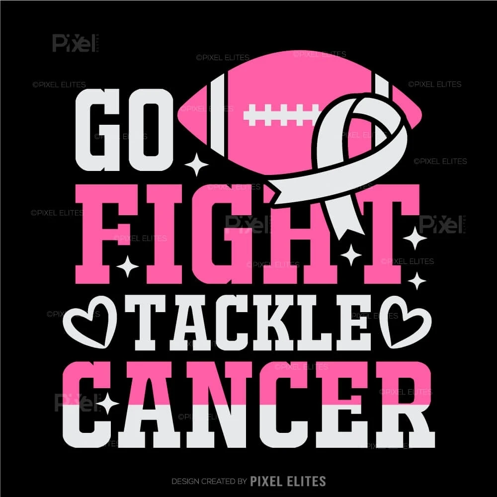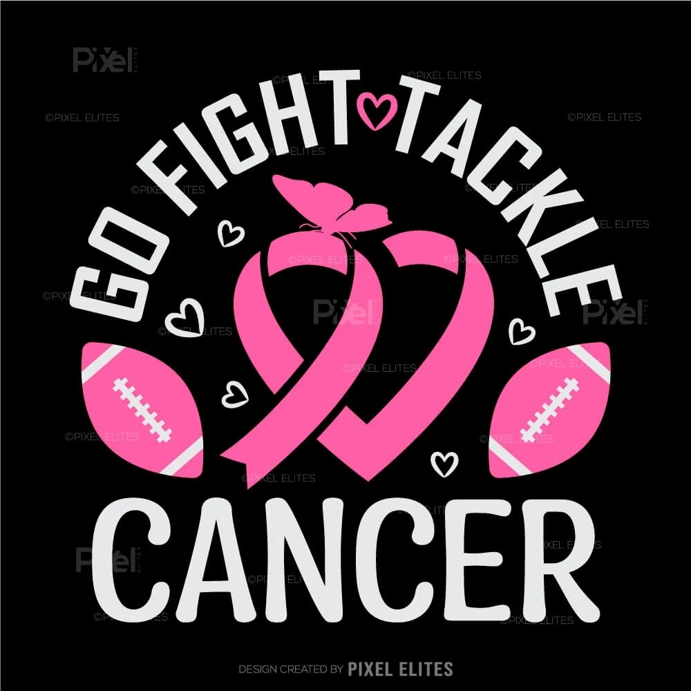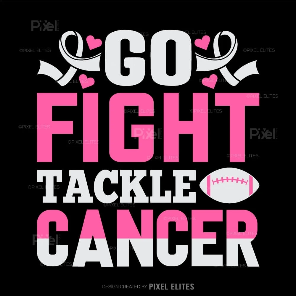 Go Fight Tackle Cancer SVG Cut Files - T-Shirt Design with Pink Ribbon - Breast Cancer Survivor Vinyl Decal for Cricut