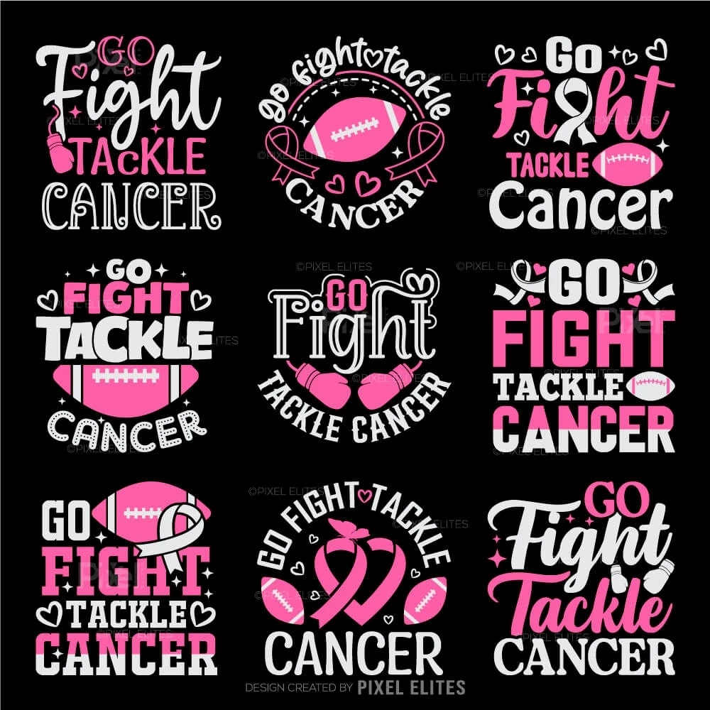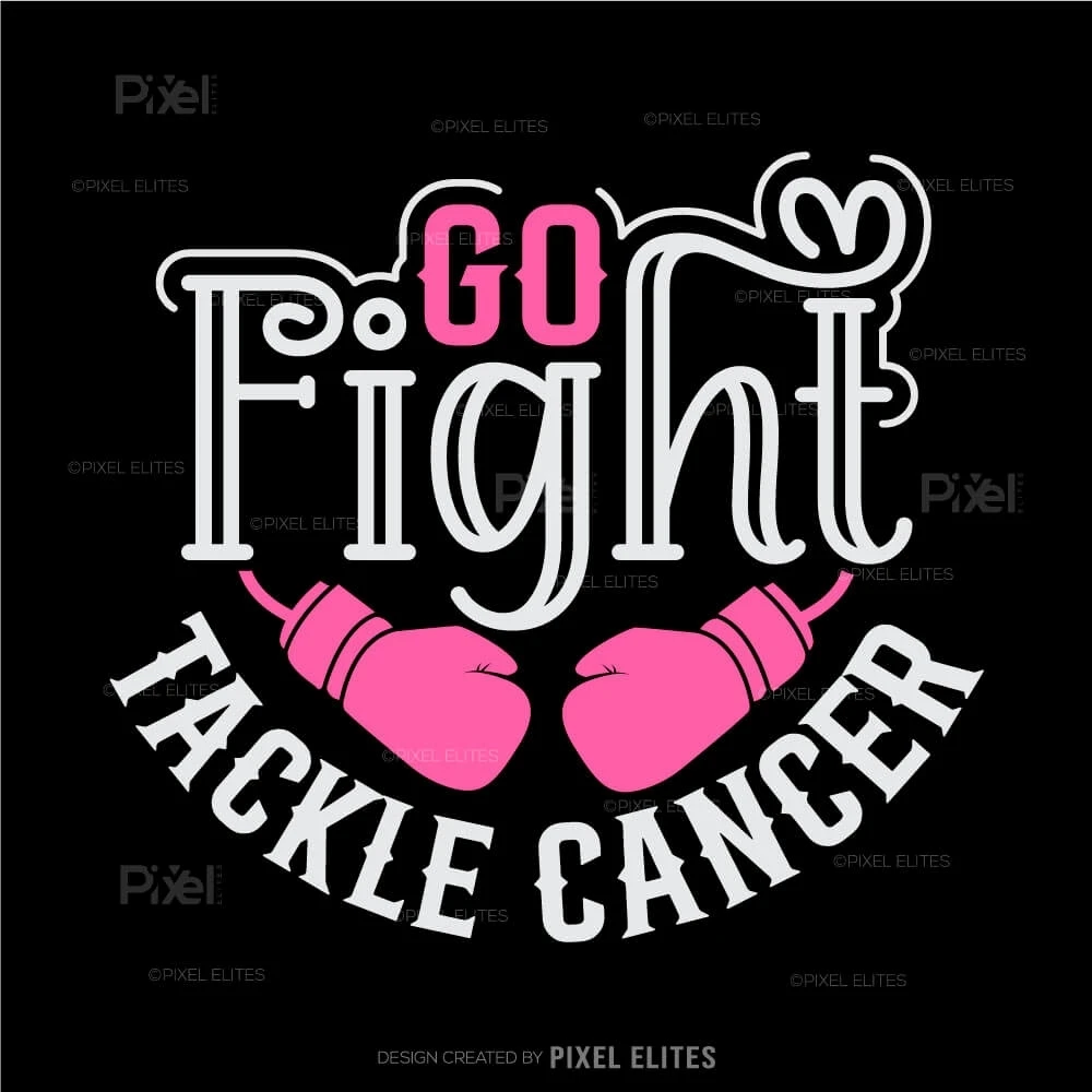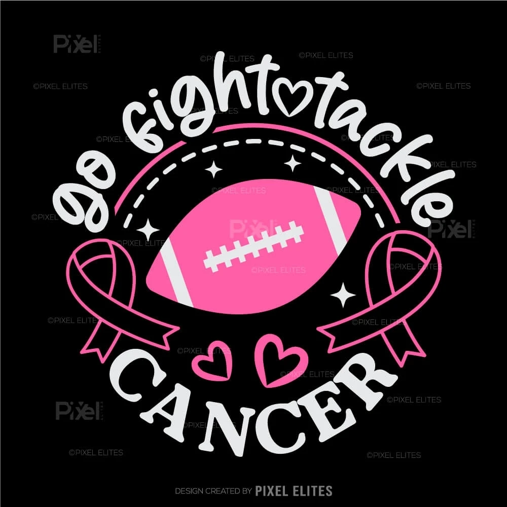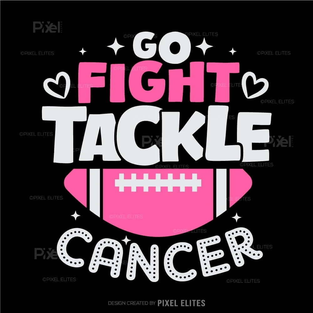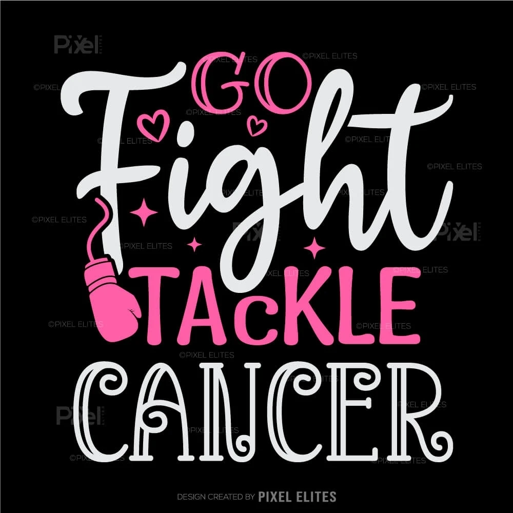 Go Fight Tackle Cancer SVG Cut Files - T-Shirt Design with Pink Ribbon - Breast Cancer Survivor Vinyl Decal for Cricut
