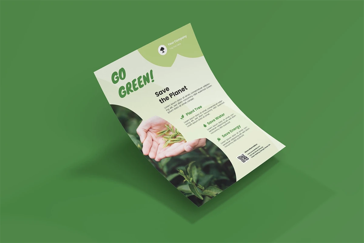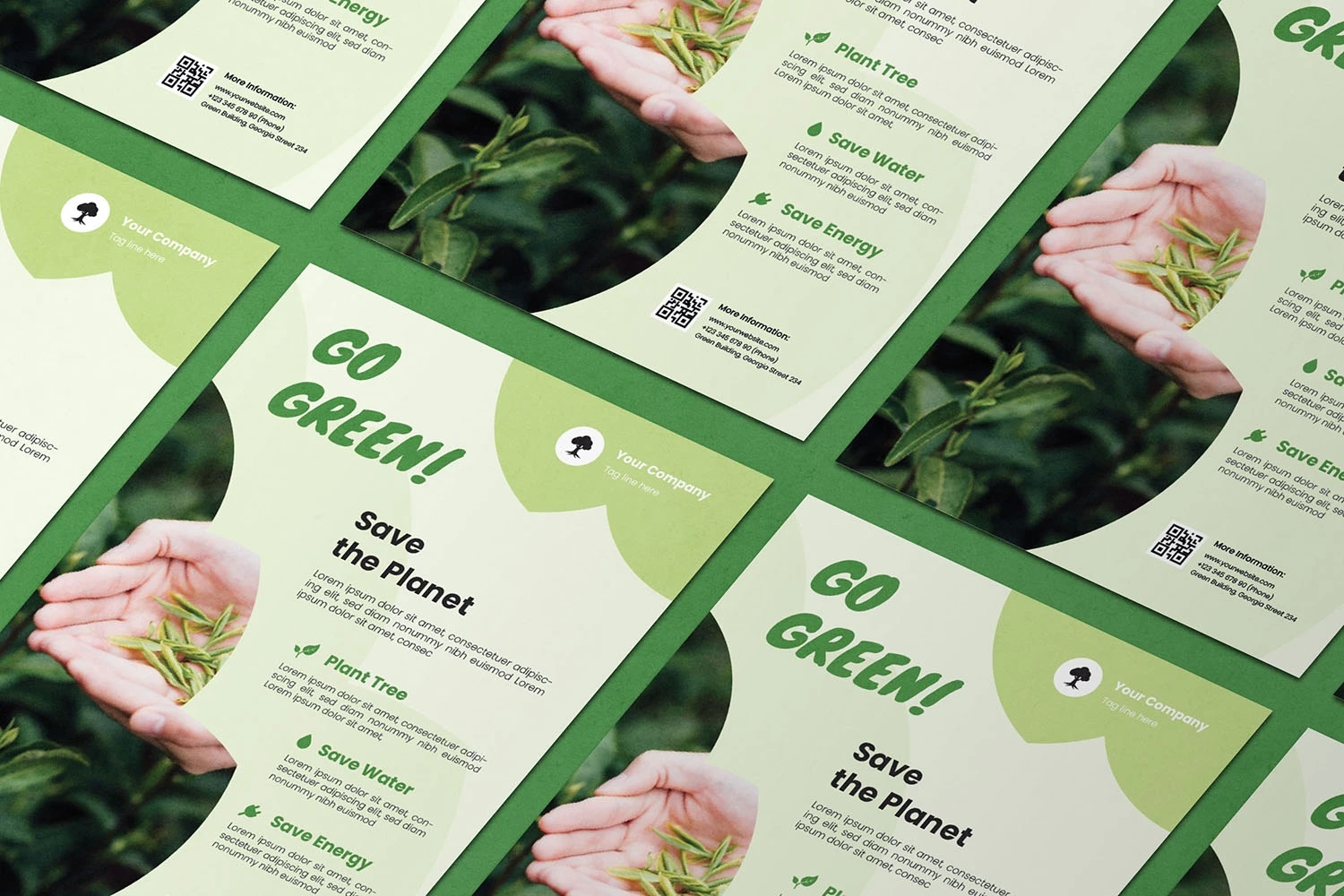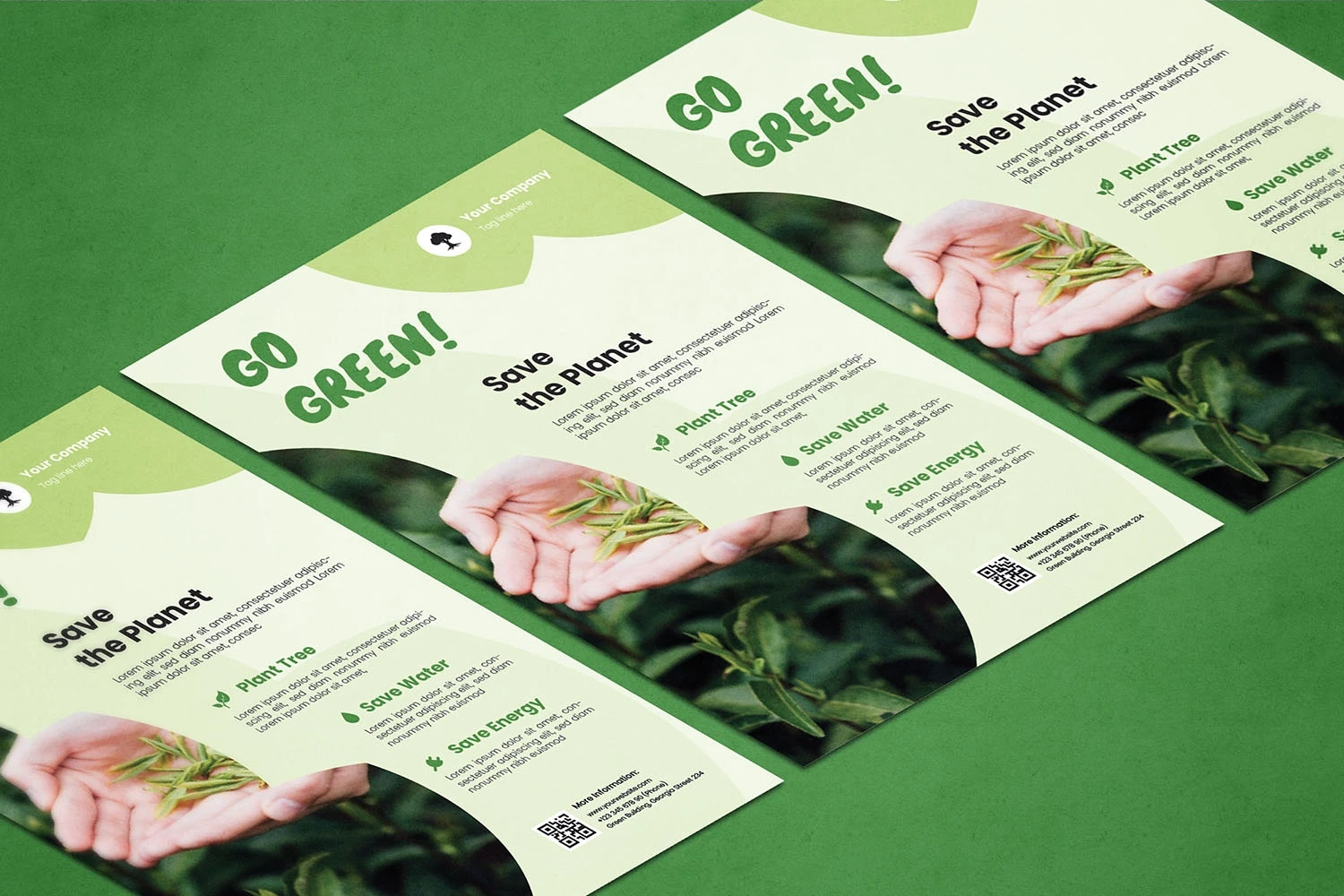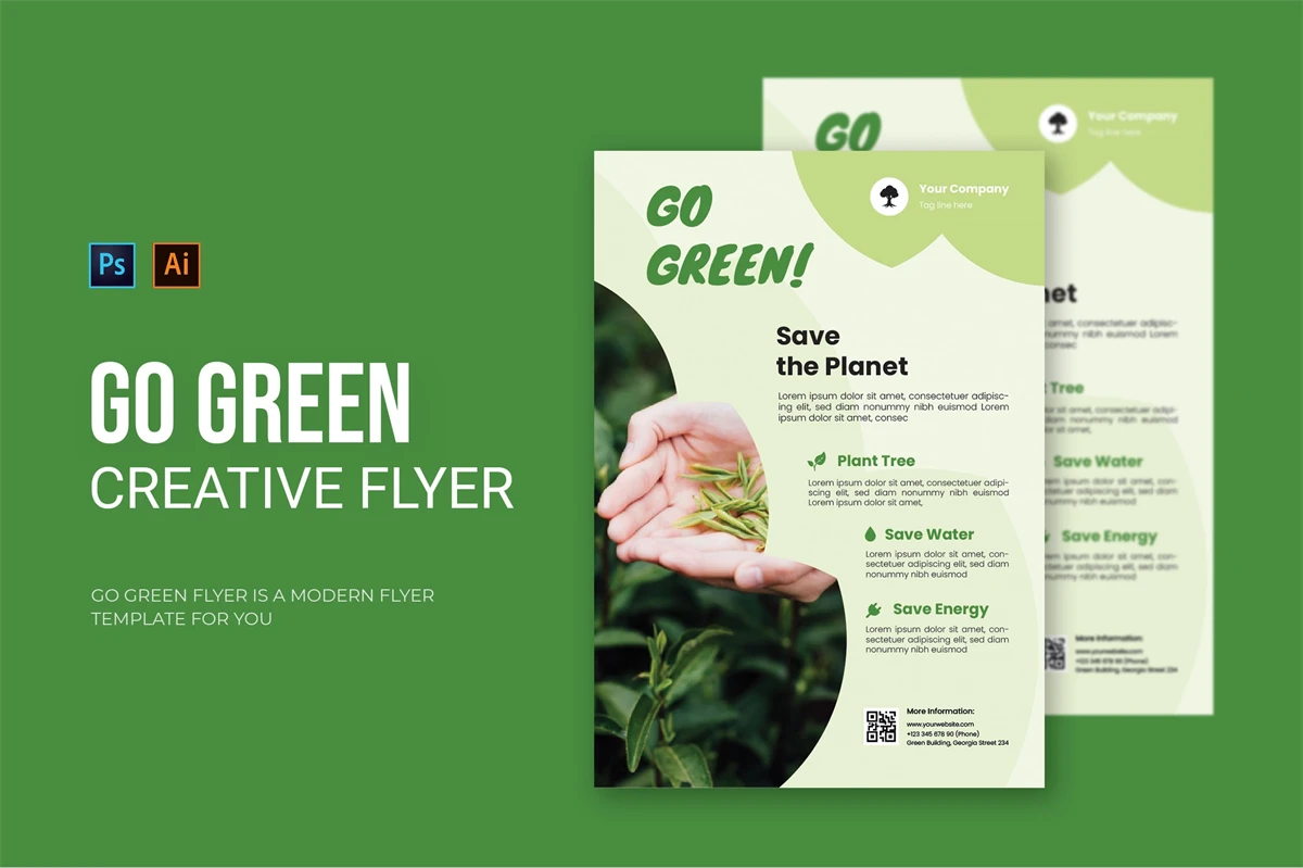 Go Green - Flyer. This Flyer template is designed for your company's business needs. very clean and elegant, and also easily edited and adjusted to your liking