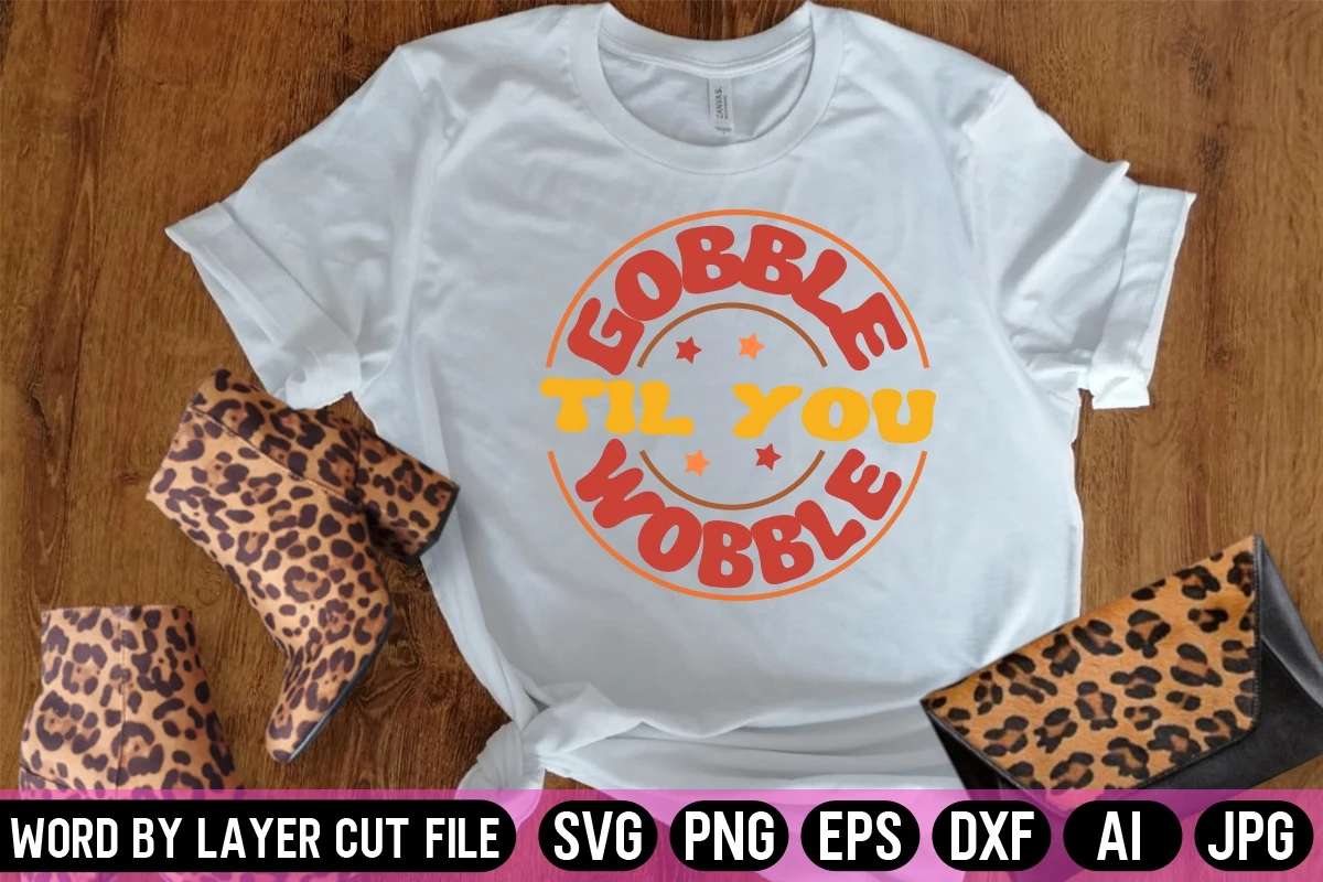 Gobble Til You Wobble Retro Round Sign Svg Design