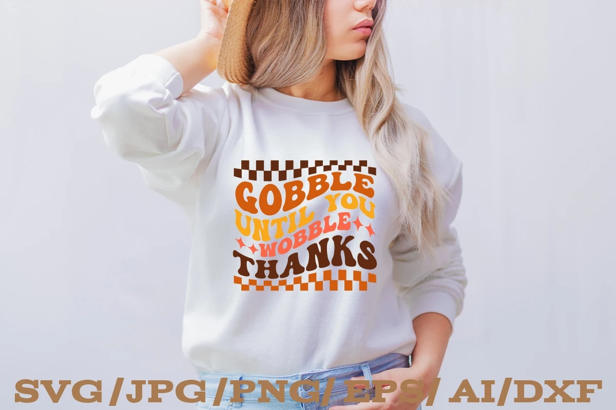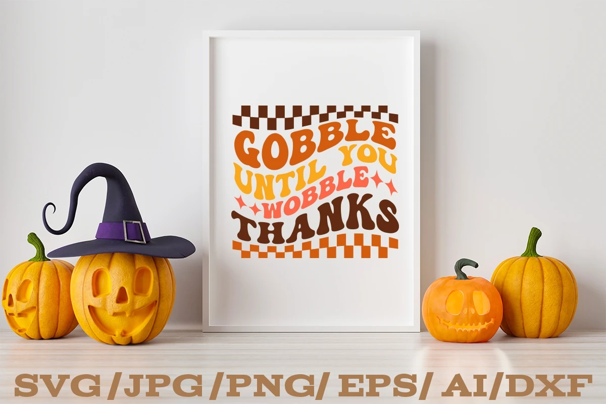 GOBBLE UNTIL YOU WOBBLE Retro Thanksgiving SVG Design