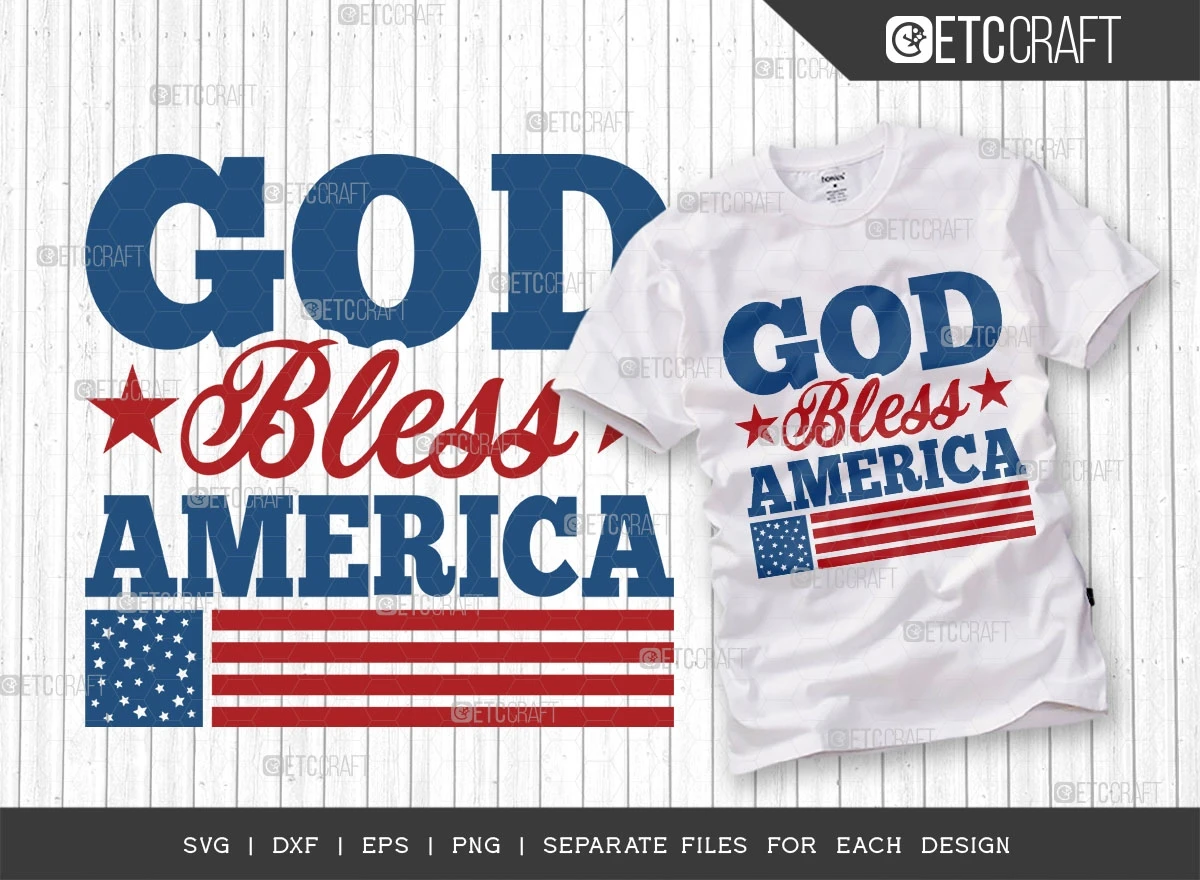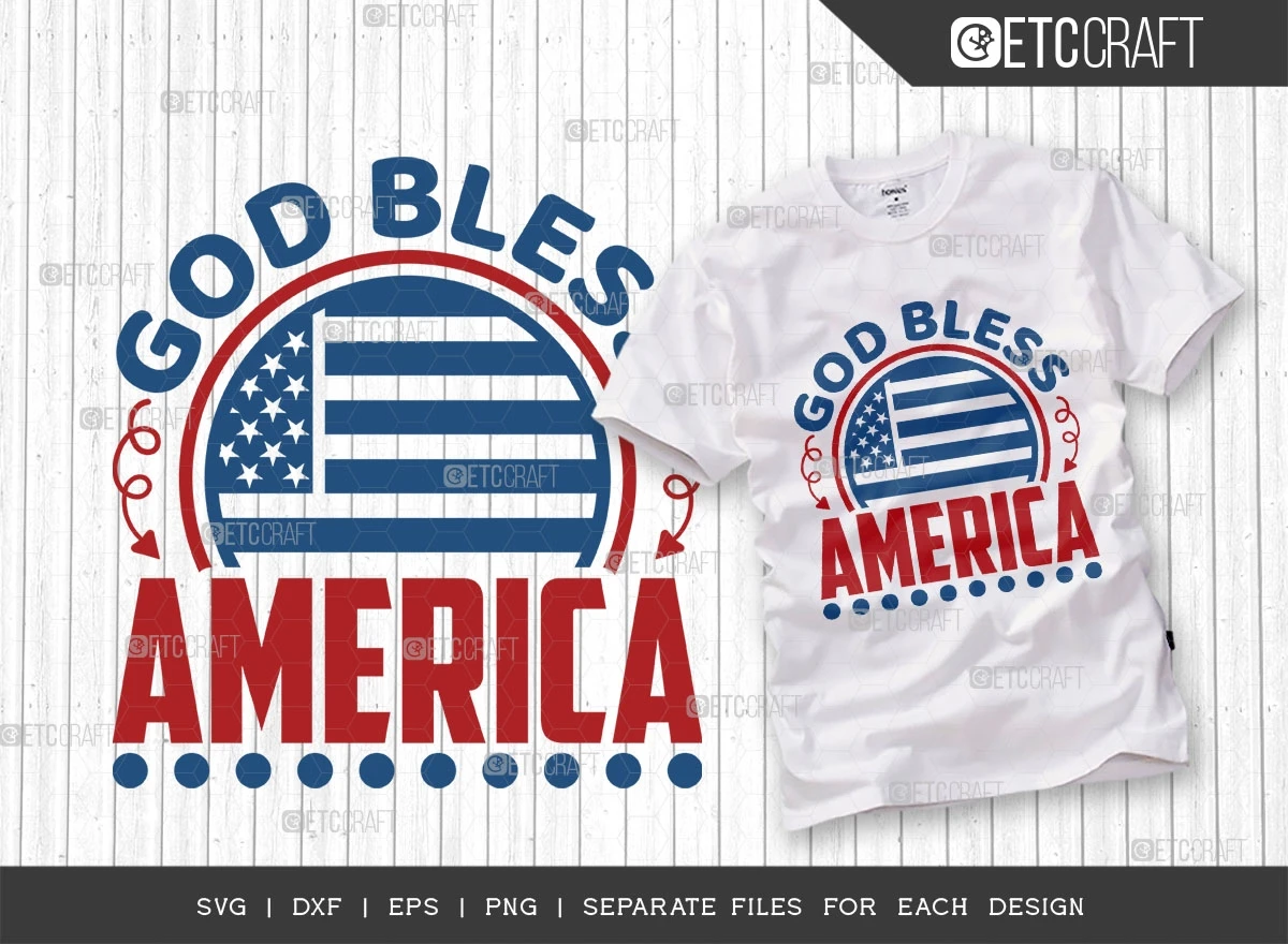 "God Bless America SVG Bundle" - the perfect addition to your 4th of July and Independence Day celebrations! This versatile and patriotic bundle is packed with high-quality designs that showcase your love for the USA. Whether you're creating apparel, accessories, or decorations, this bundle has got you covered with its unique typography and iconic American elements.
