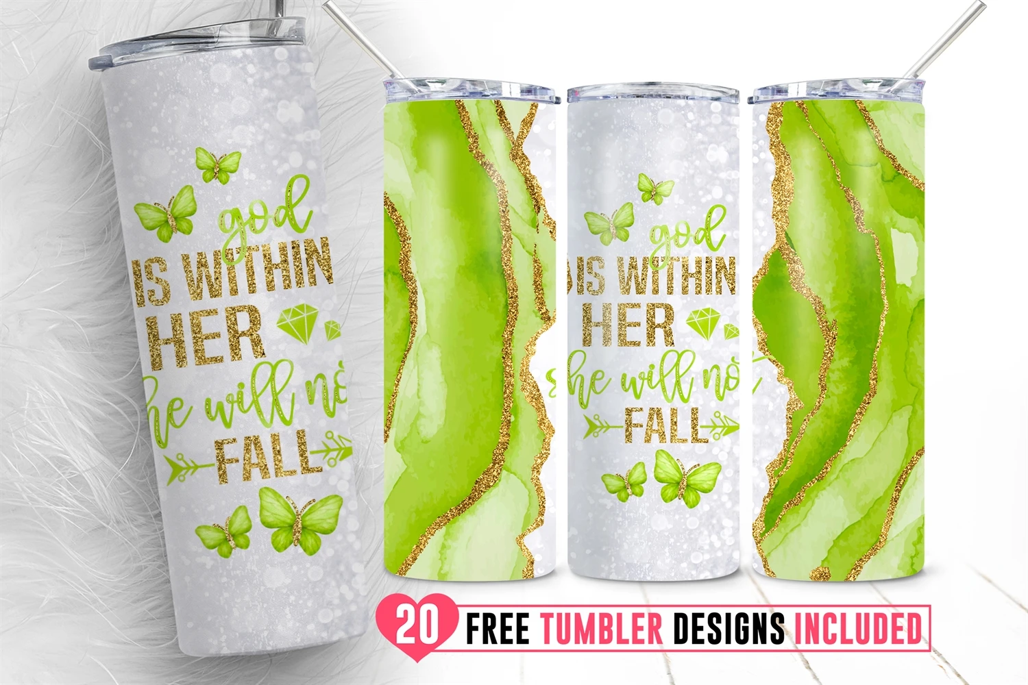 God is Within Her She will not Fall Skinny Tumbler Christian