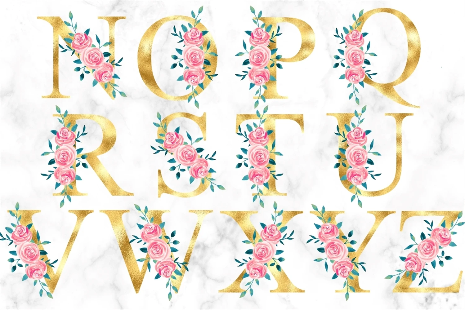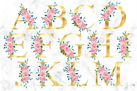 Gold Flower Alphabet Clipart Floral Monogram Letters PNG