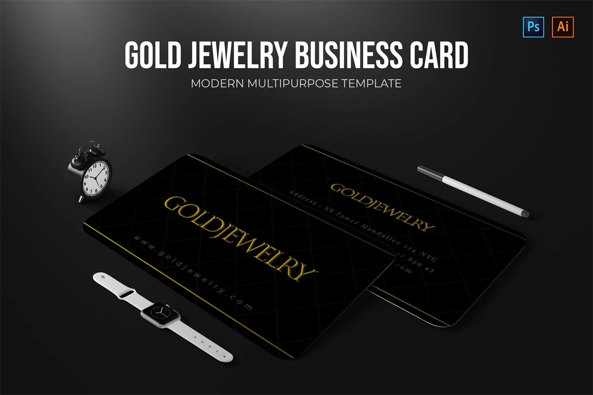 This Gold Jewelry - Business Card make your business cards look professional. You can use this business card for, identity, company business cards, Corporate Business, Creative, Blogs, Photographers, Artists, Designers, etc.