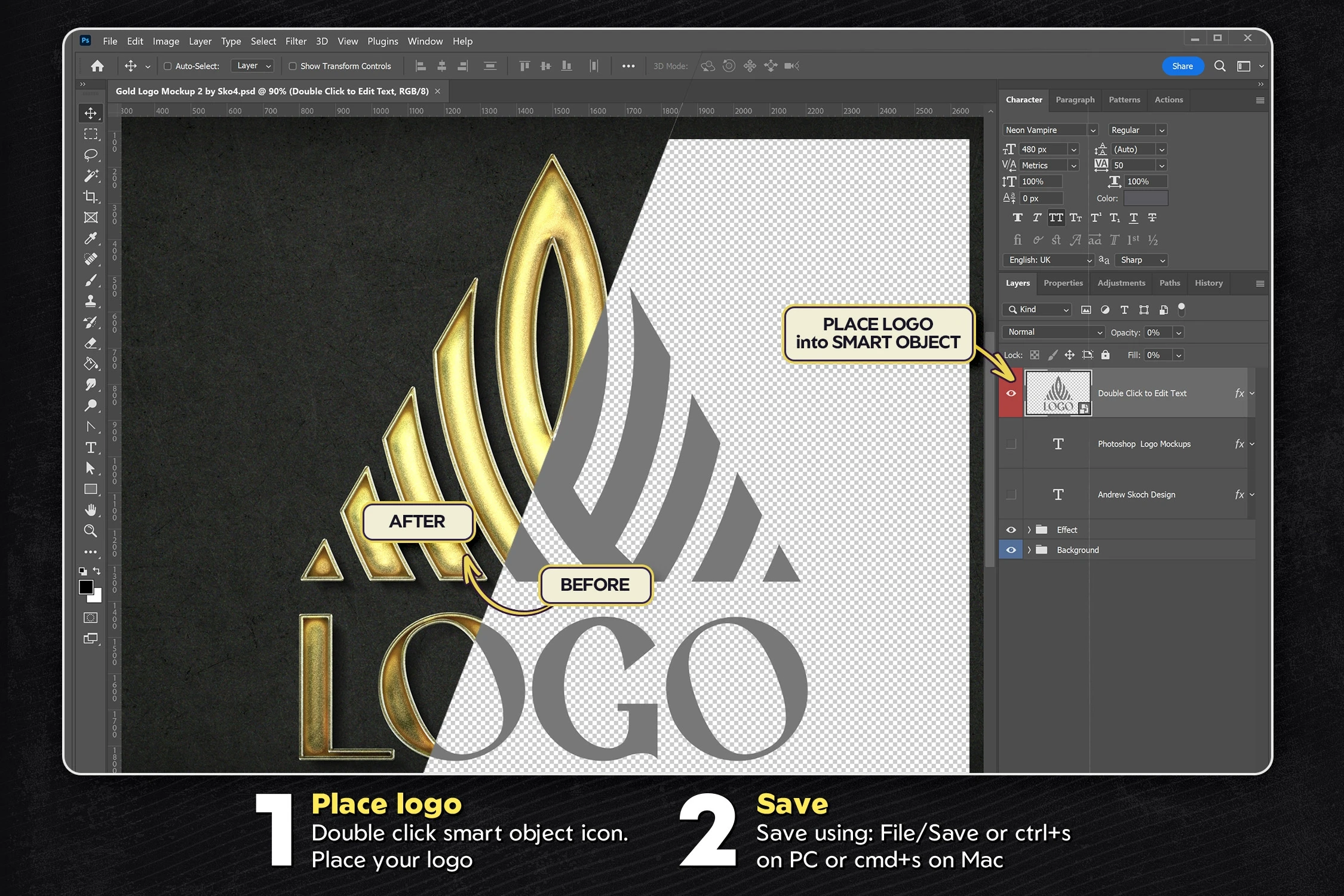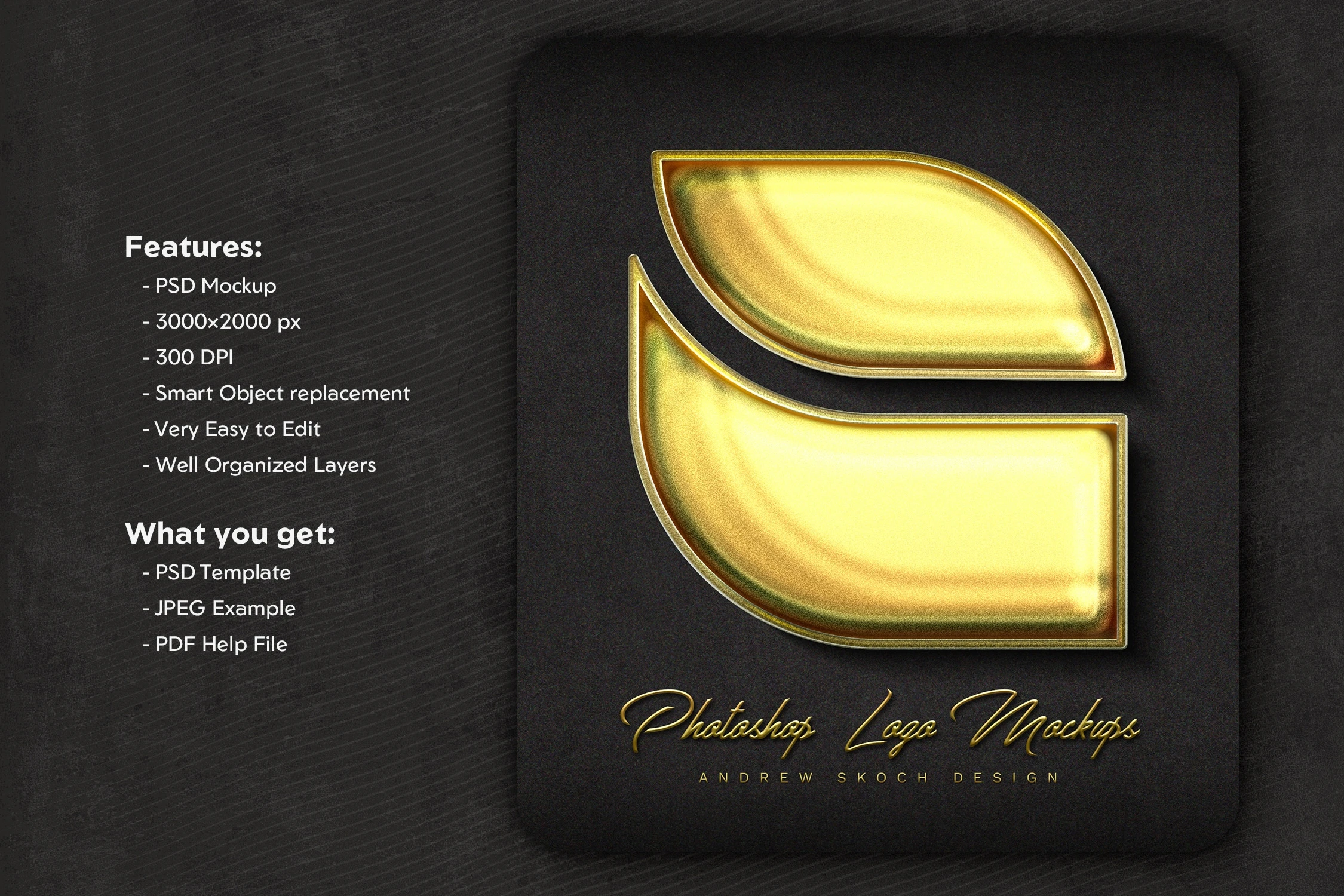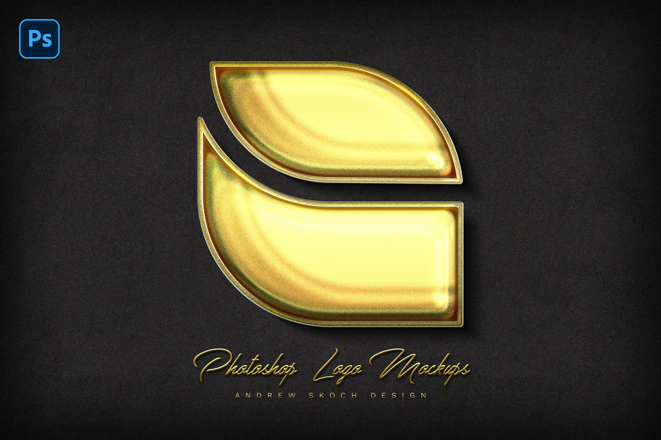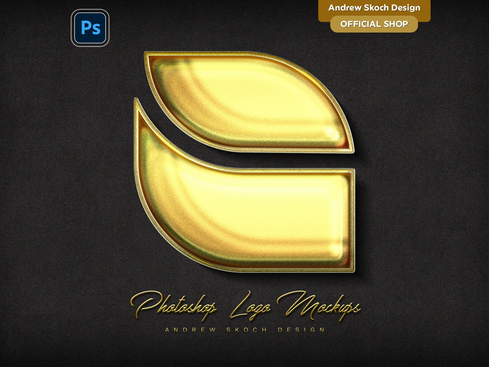 This Photoshop mockup features a stunning gold look on a dark textured background, giving your logo or text a sleek and luxury vibe. Perfect for branding, presentations, or creative projects that need a unique edge.