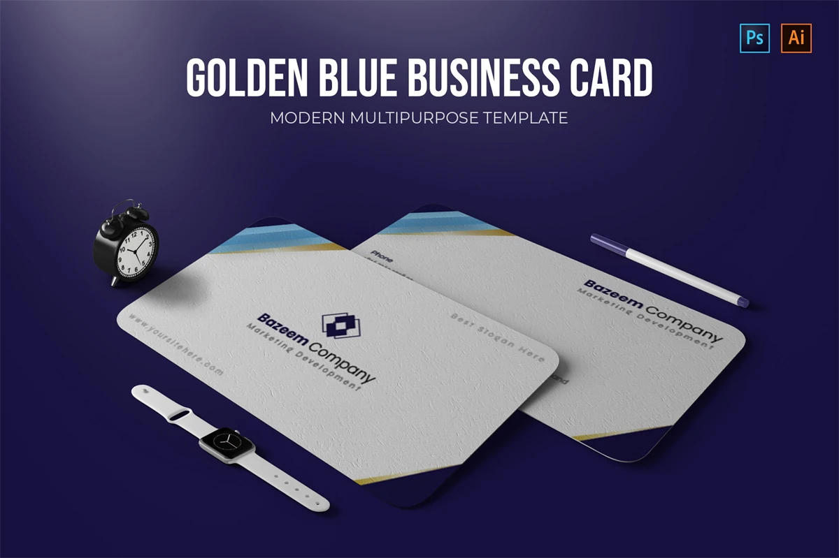 This Golden Blues - Business Card make your business cards look professional. You can use this business card for, identity, company business cards, Corporate Business, Creative, Blogs, Photographers, Artists, Designers, etc.