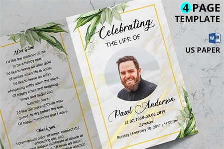 8.5x11 Inches Microsoft Word, Publisher and CANVA Funeral Program Template.