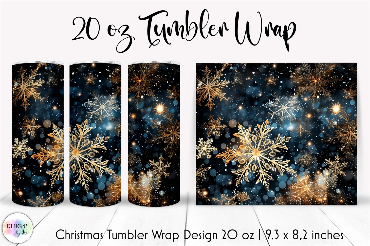 Beautiful Christmas tumbler wrap designs with shimmering snowflakes, stardust inspirational saying.