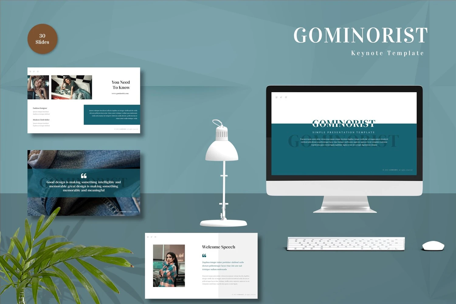 Get it now! **Gominorist - Keynote Template** for All Business and Personal Needs All elements on this template are editable; input your content, replace your image with a placeholder, change the color, and all presentations include an animated slide to present your slides.