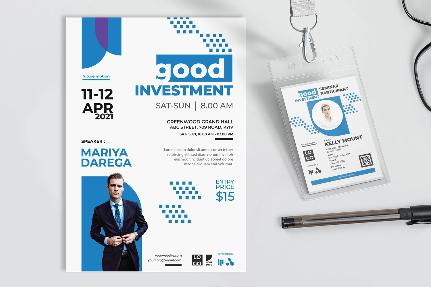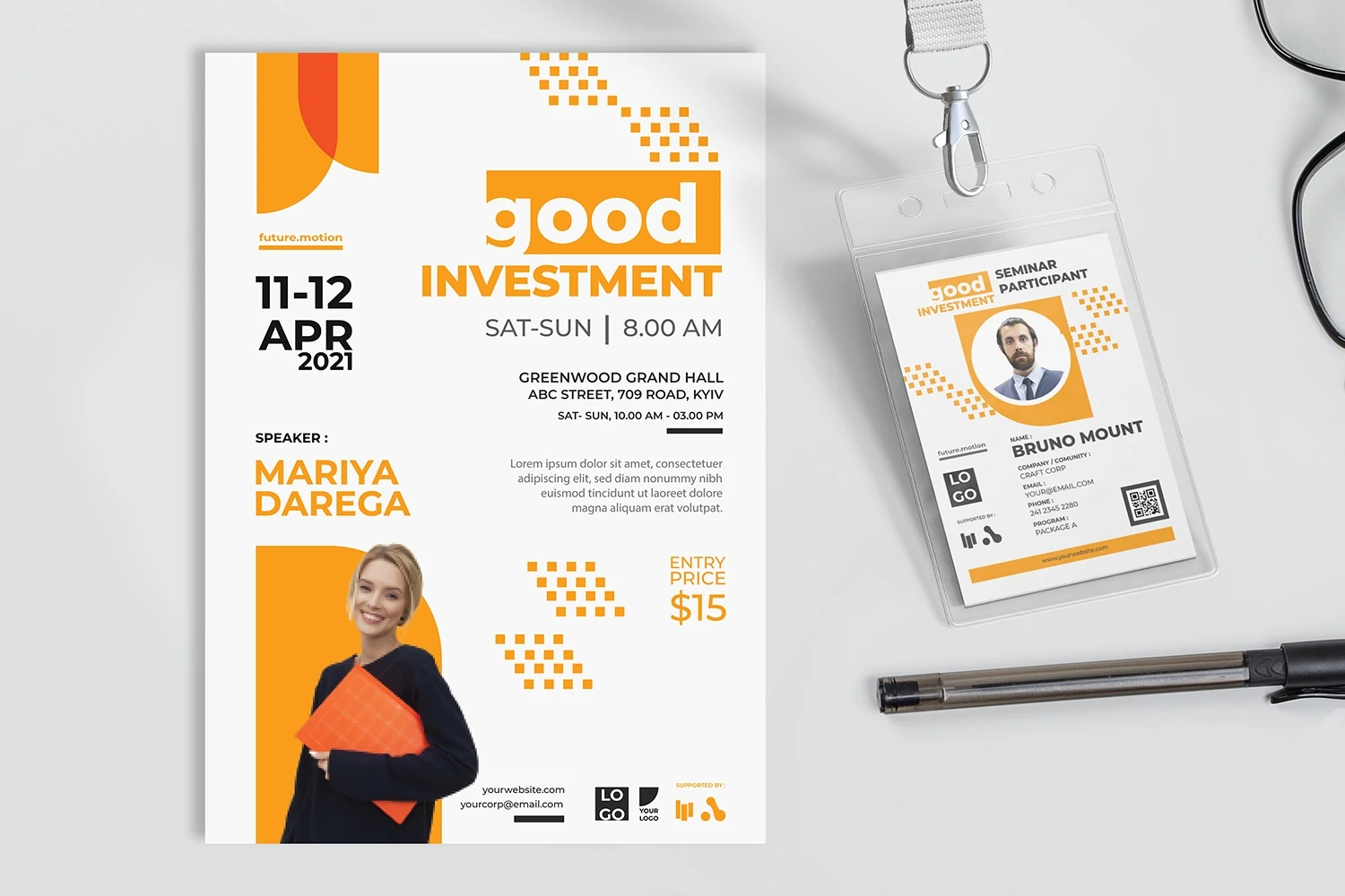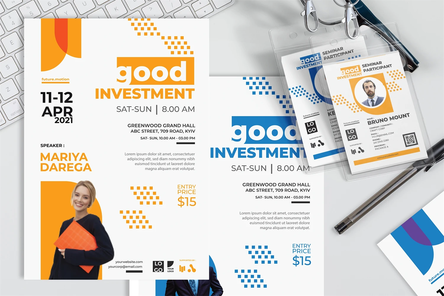 Good Investment - Poster and Seminar Invitation, is an invitation card leaflet, poster design, etc. Simple and very elegant You can easily edit & adjust each design because each layer such as text, images and shapes are well organized and highlighted.