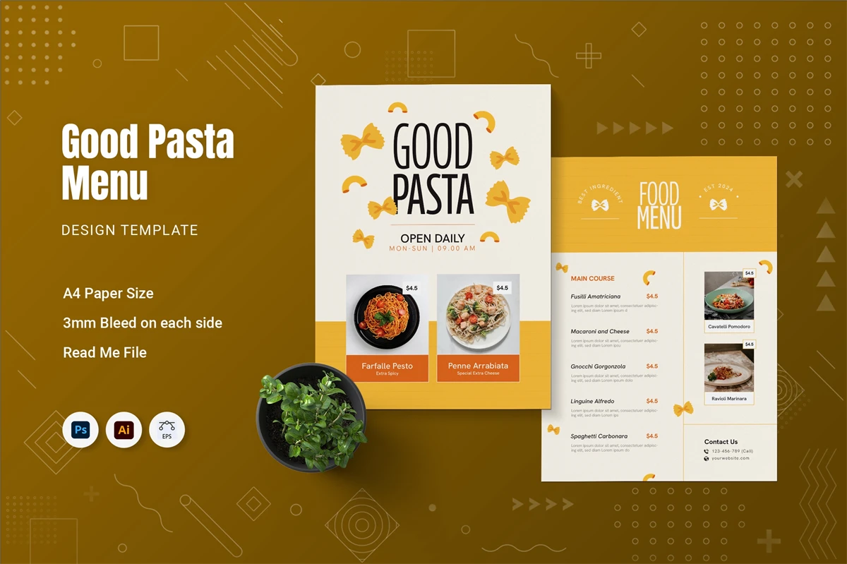 Promote your restaurant, cafe, or anything else with this **"Good Pasta Restaurant Menu."**