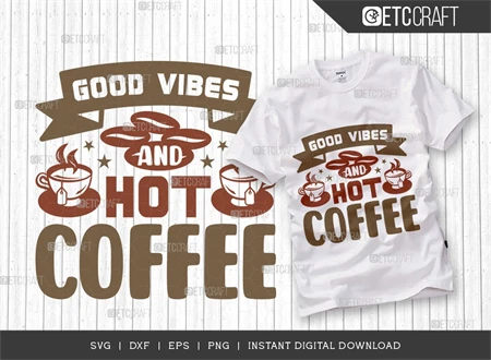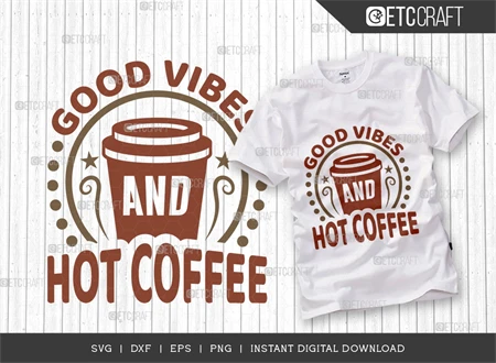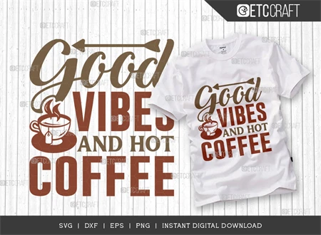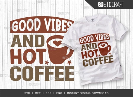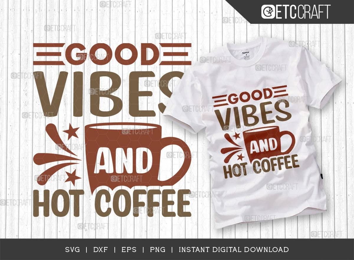 Infuse your day with positivity and coffee bliss through the "Good Vibes And Hot Coffee" SVG Bundle. Download now to create projects that radiate warmth and joy, one cup of coffee at a time!