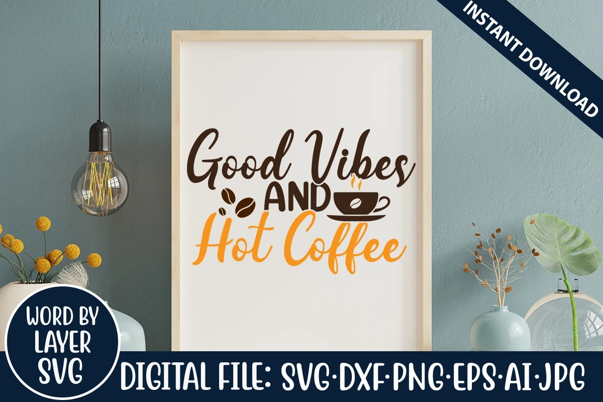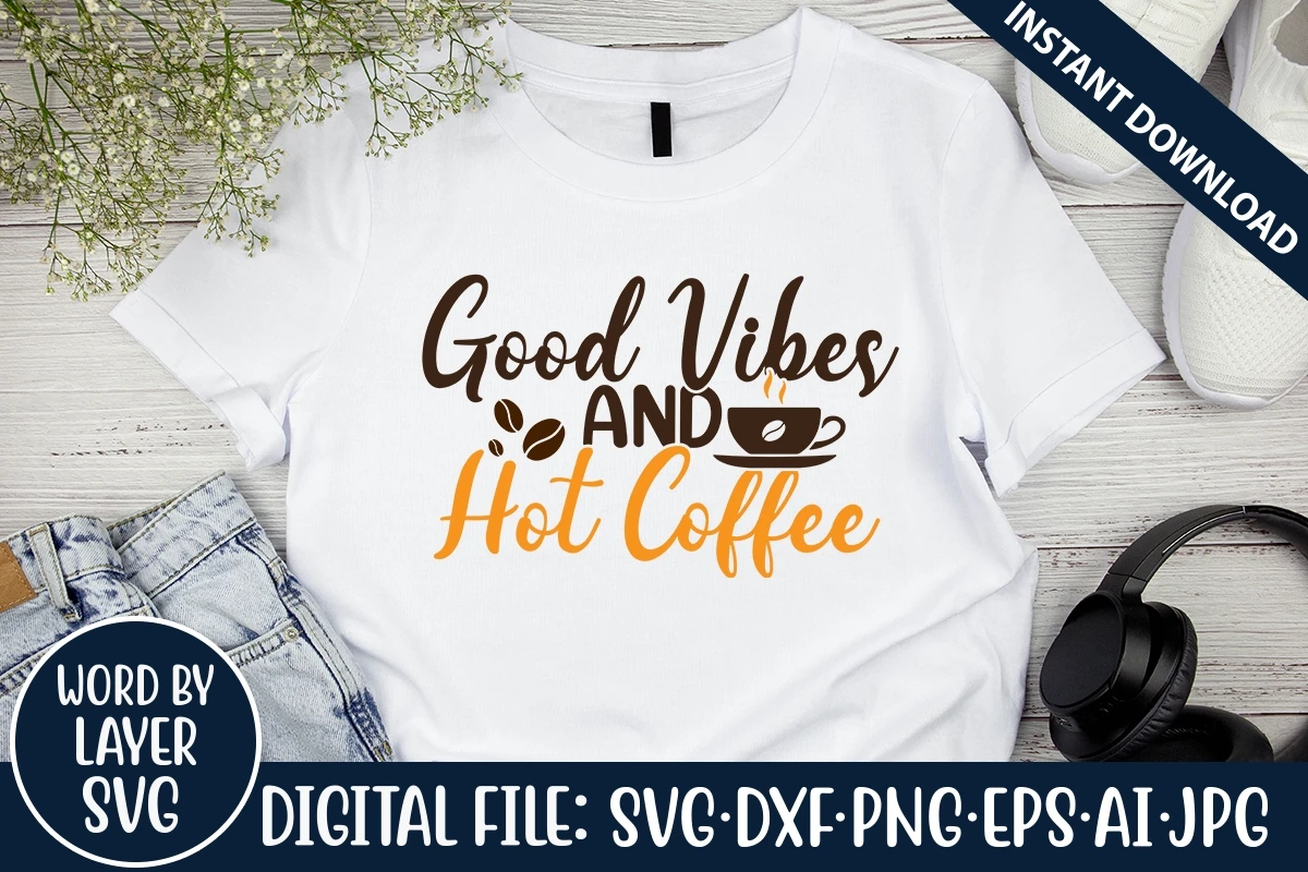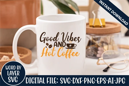 Good Vibes & Hot Coffee SVG Design, SVG Cut Files